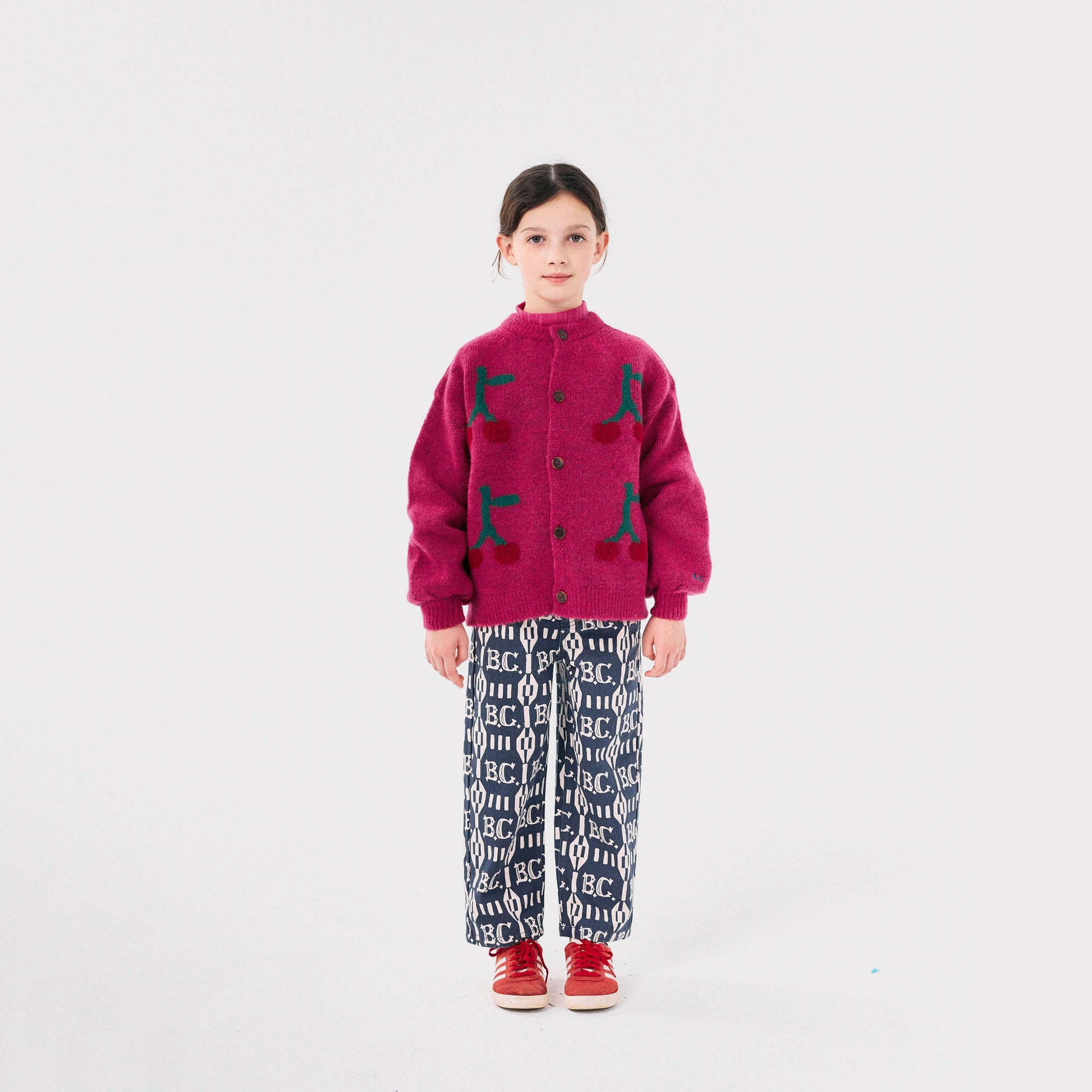 女童玫红色樱桃提花开衫