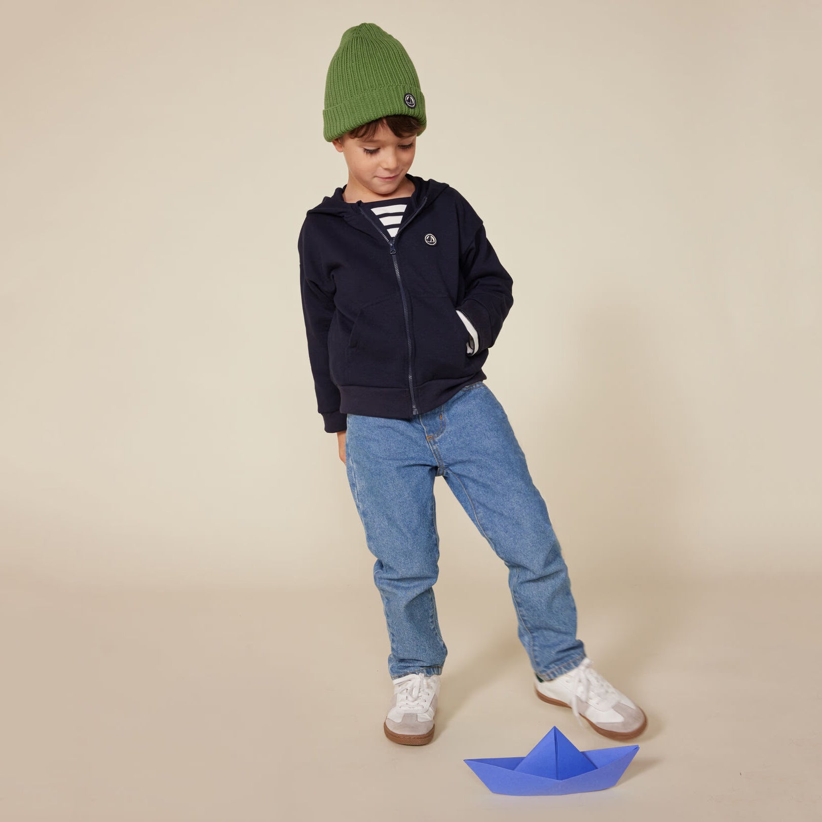 男童藏青色棉拉链上衣