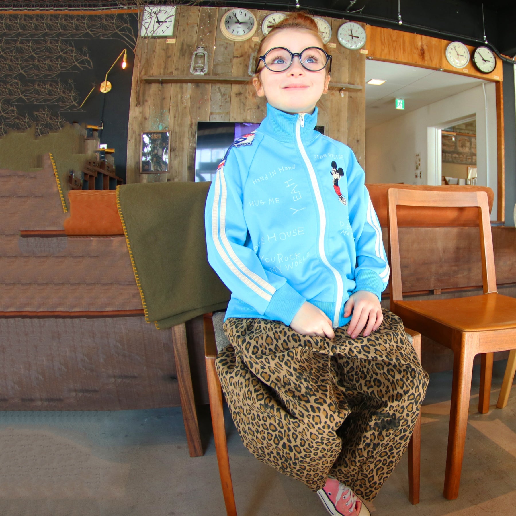 儿童棕色豹纹棉长裤
