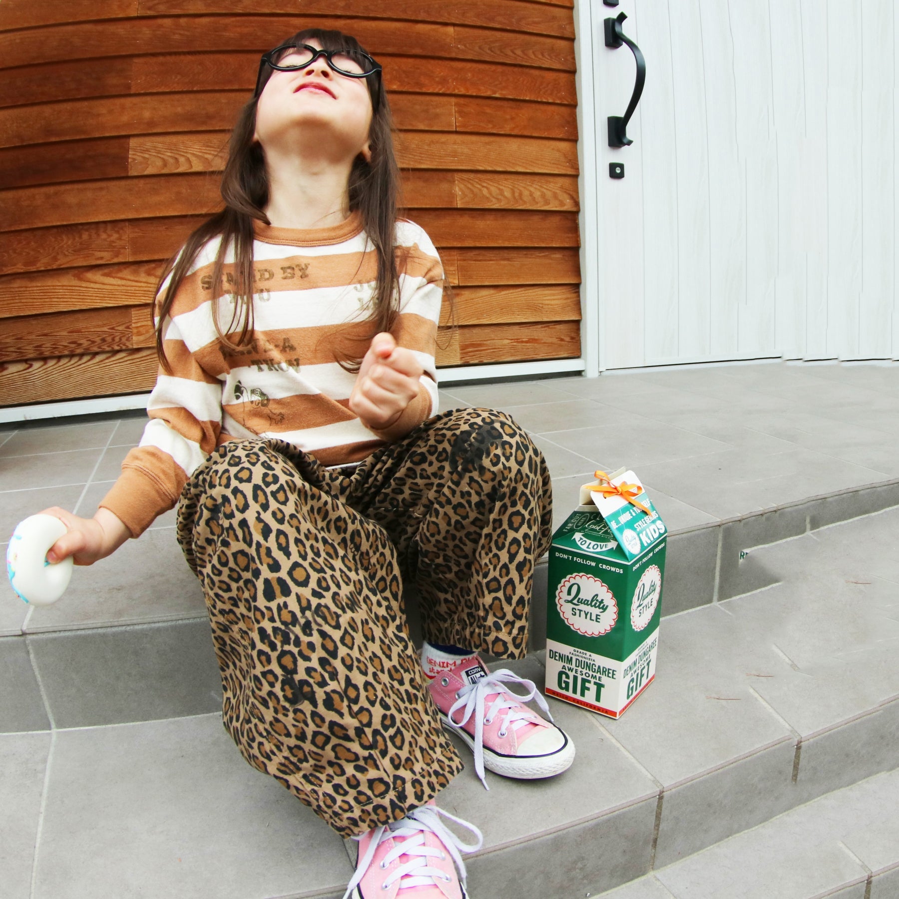 增加 儿童棕色豹纹棉长裤 的数量