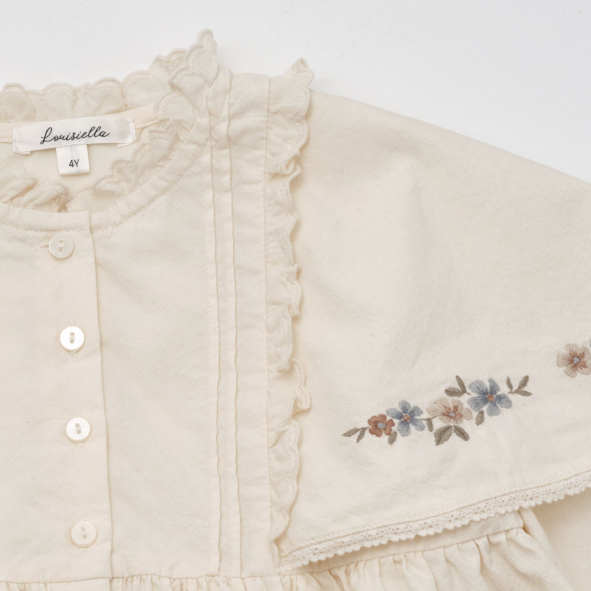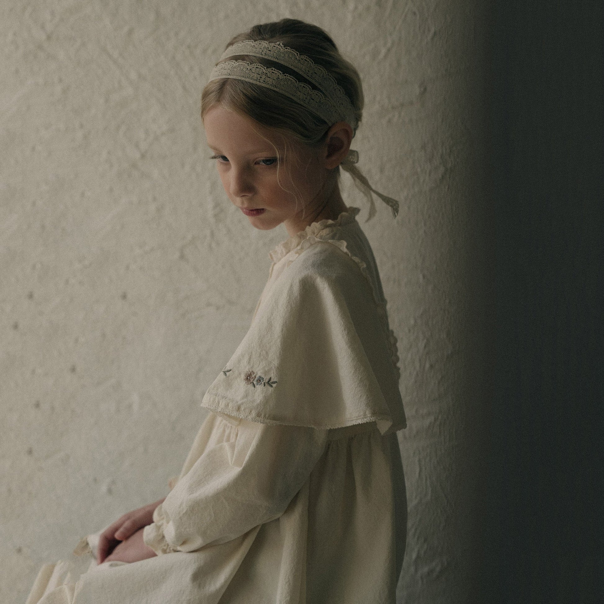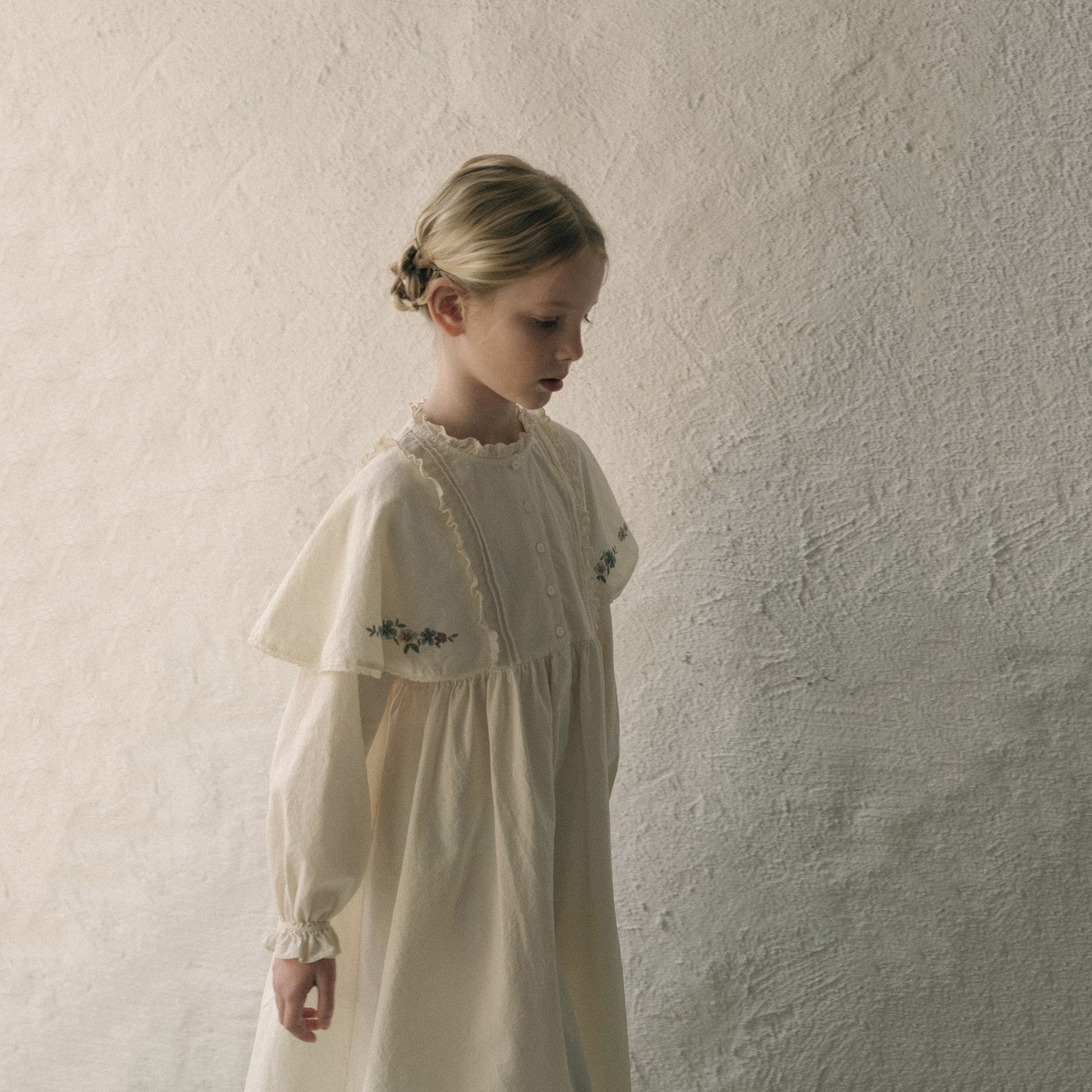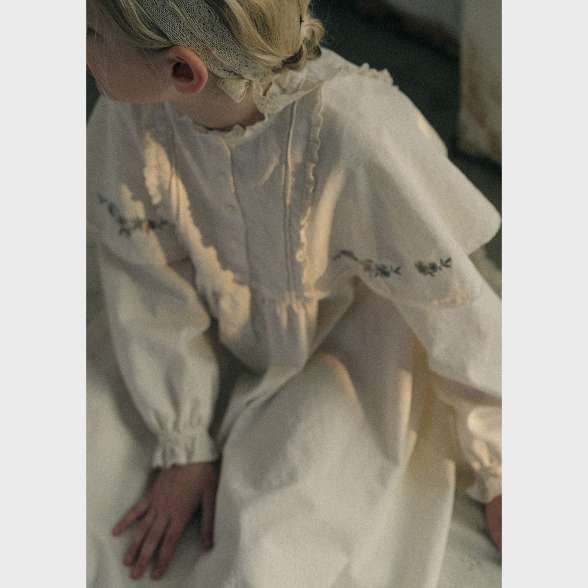 女童白色刺绣棉连衣裙
