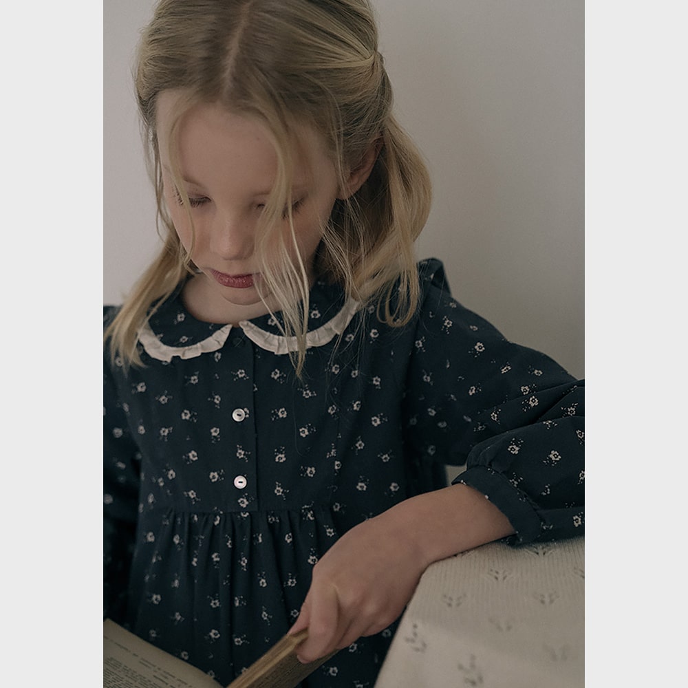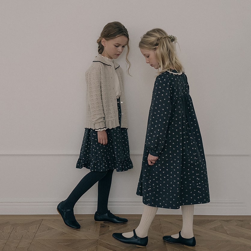 女童木炭色碎花棉连衣裙