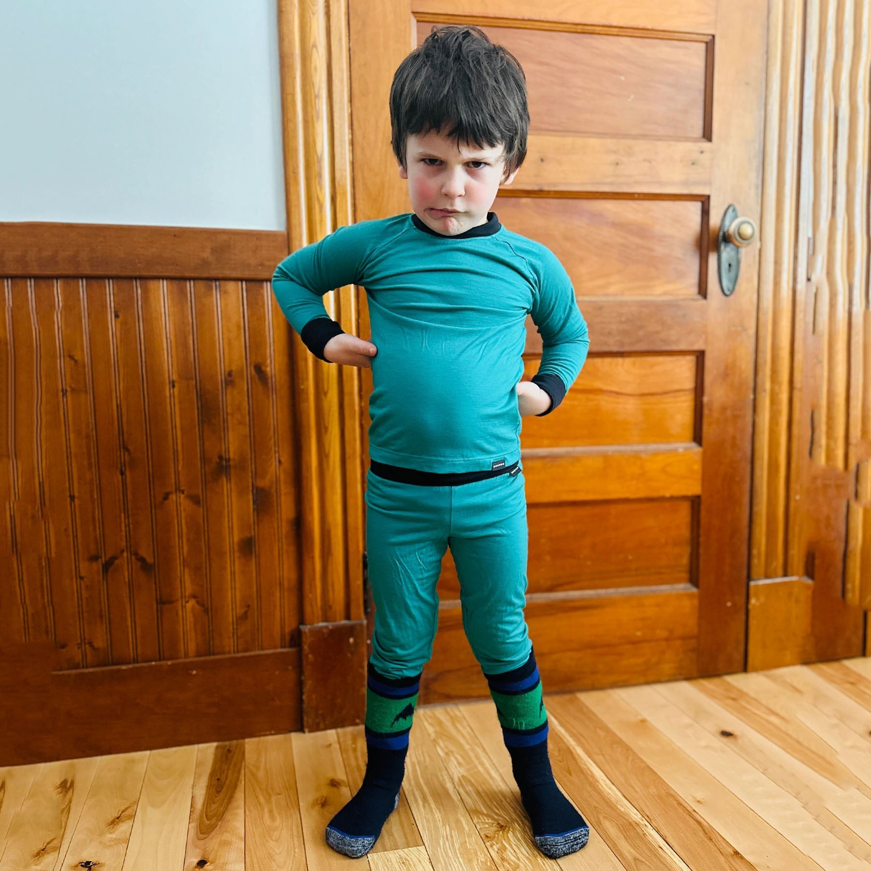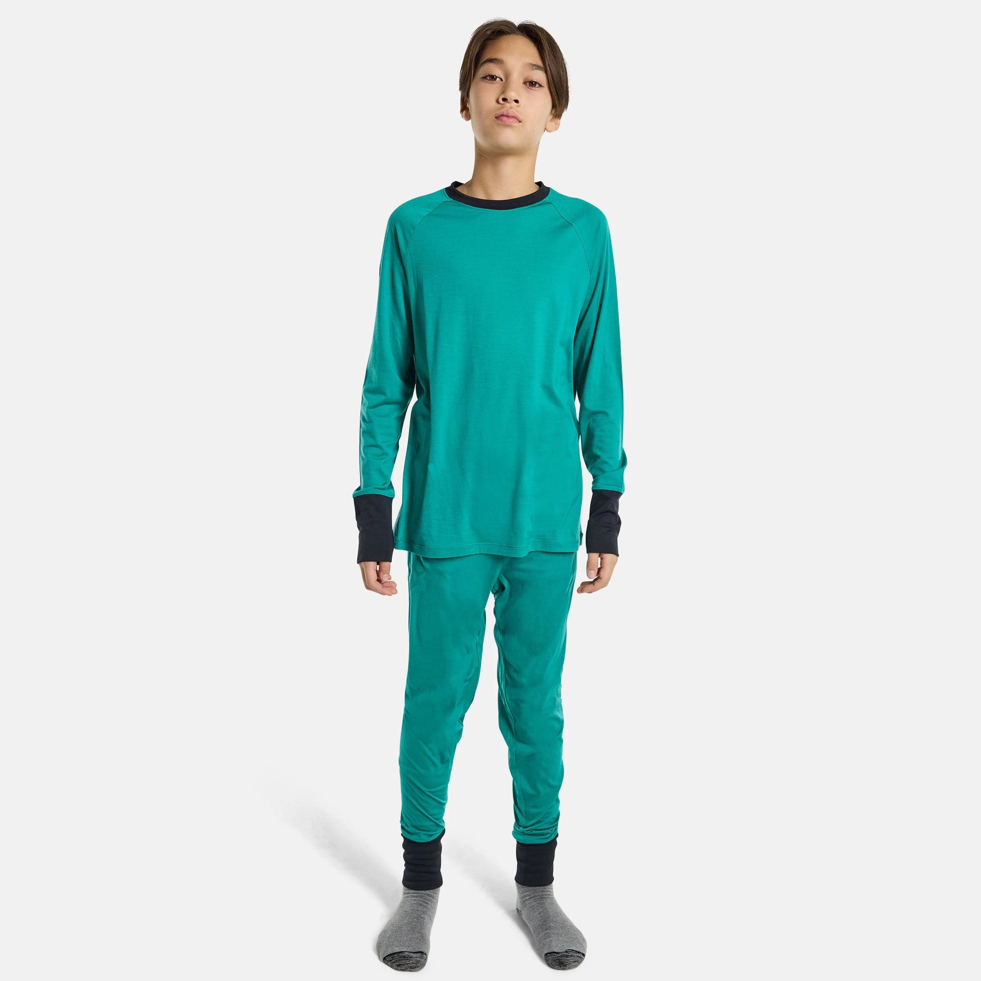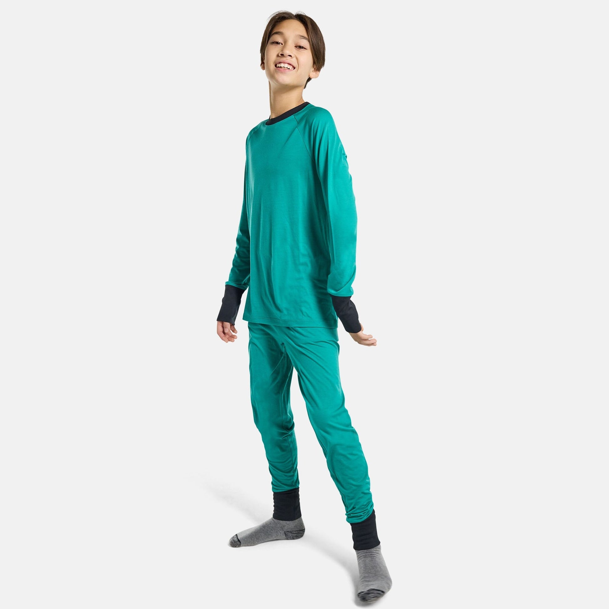 儿童绿色滑雪羊毛保暖套装