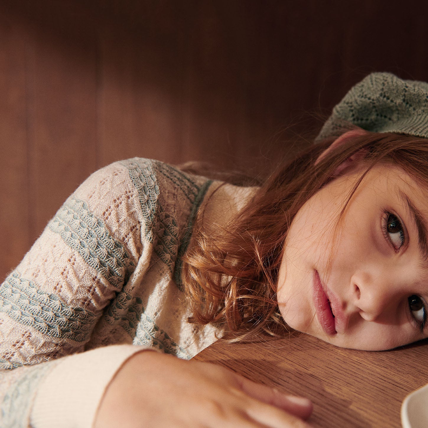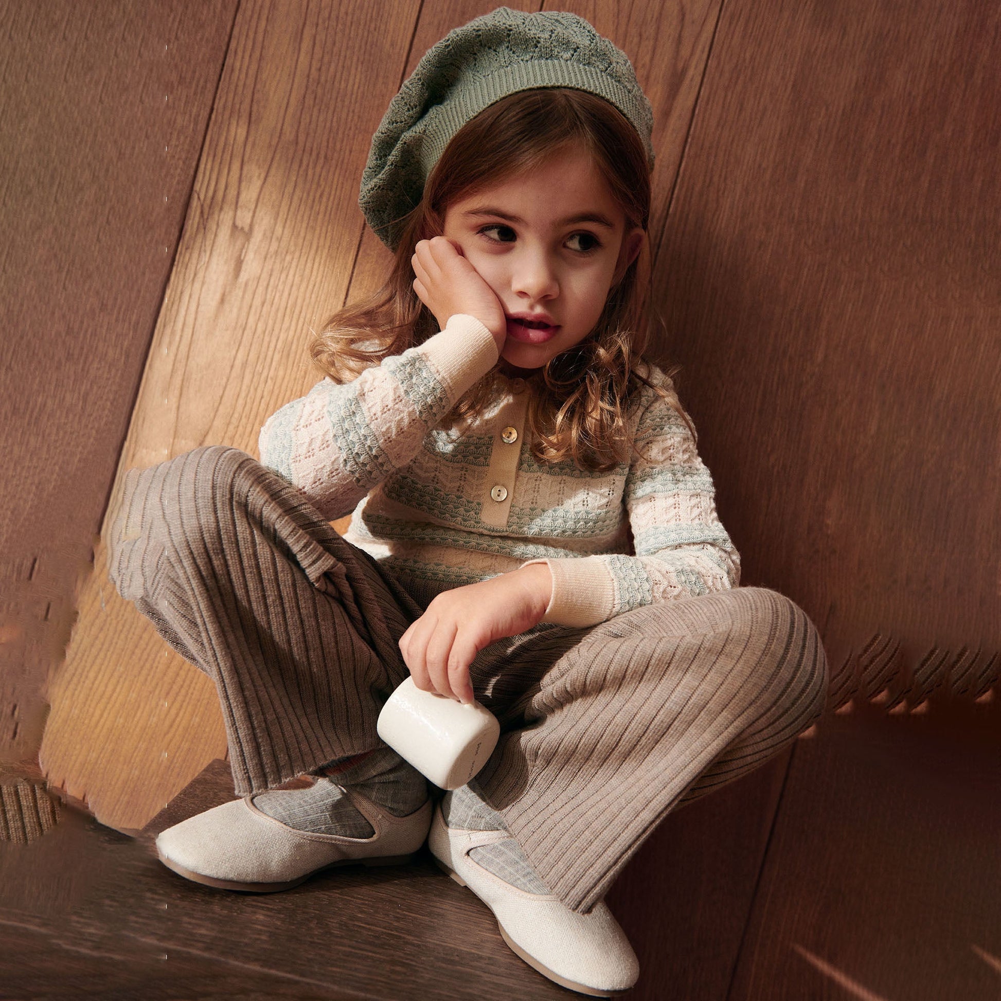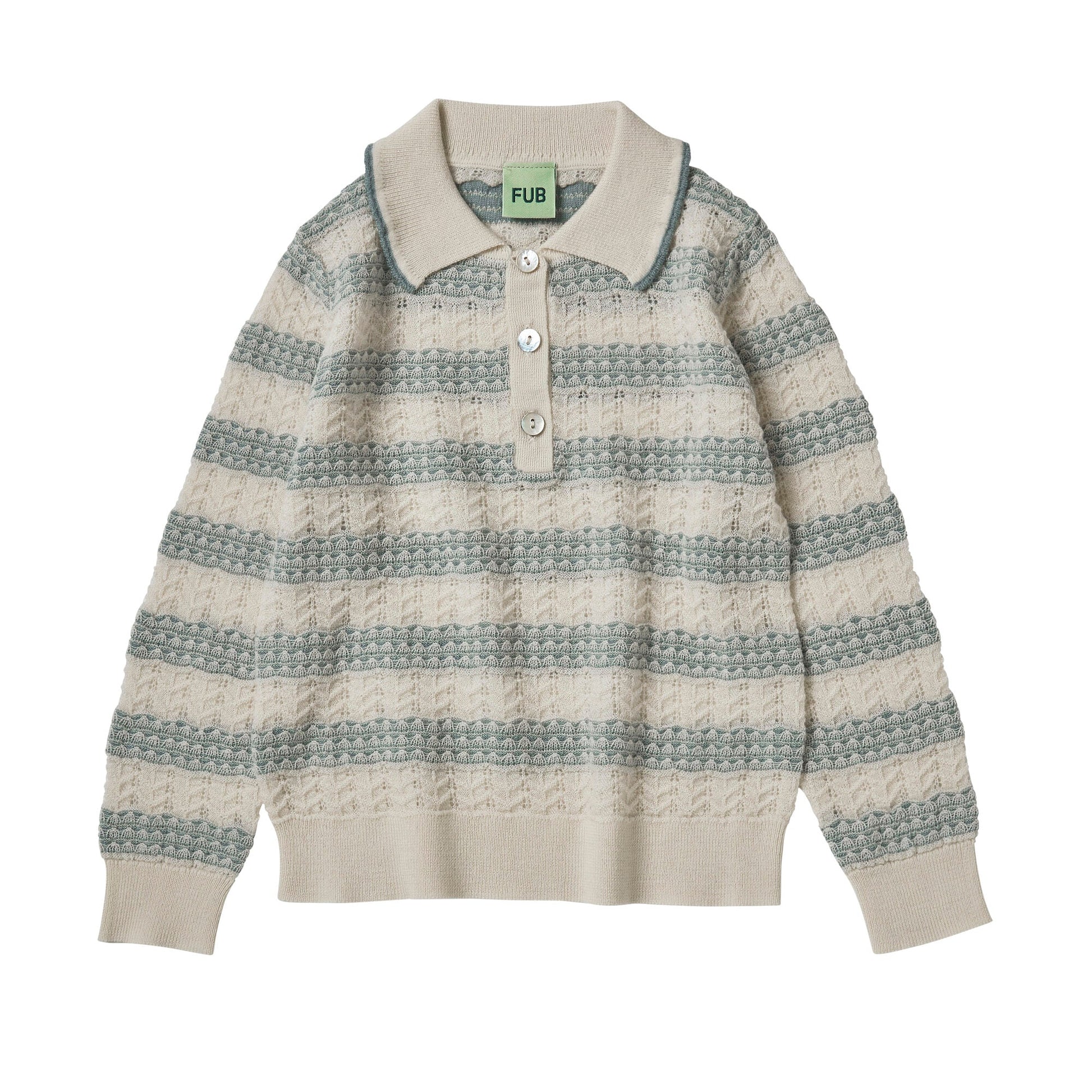 儿童浅绿色镂空羊毛Polo衫