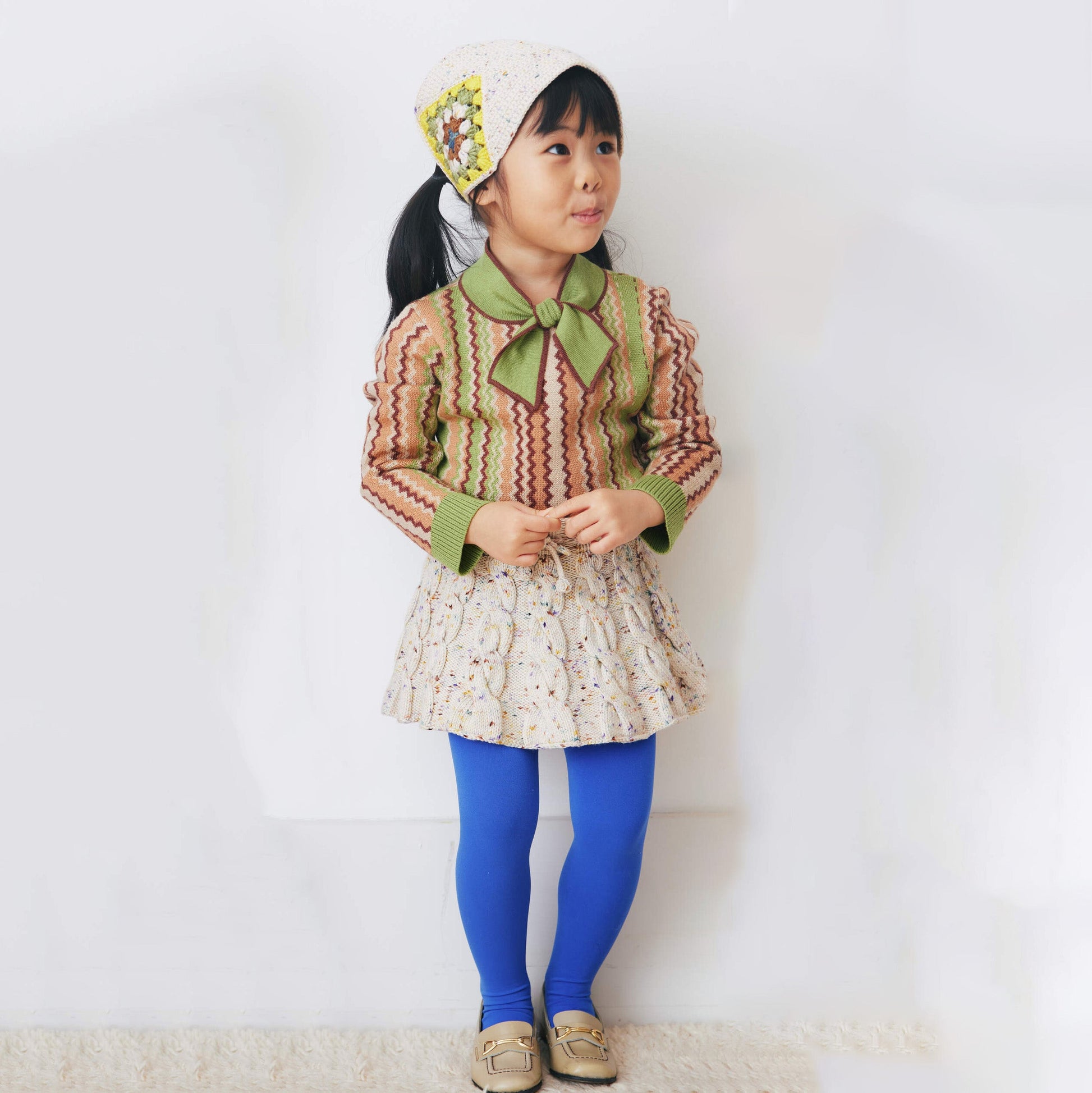 女童奶油白羊毛短裙