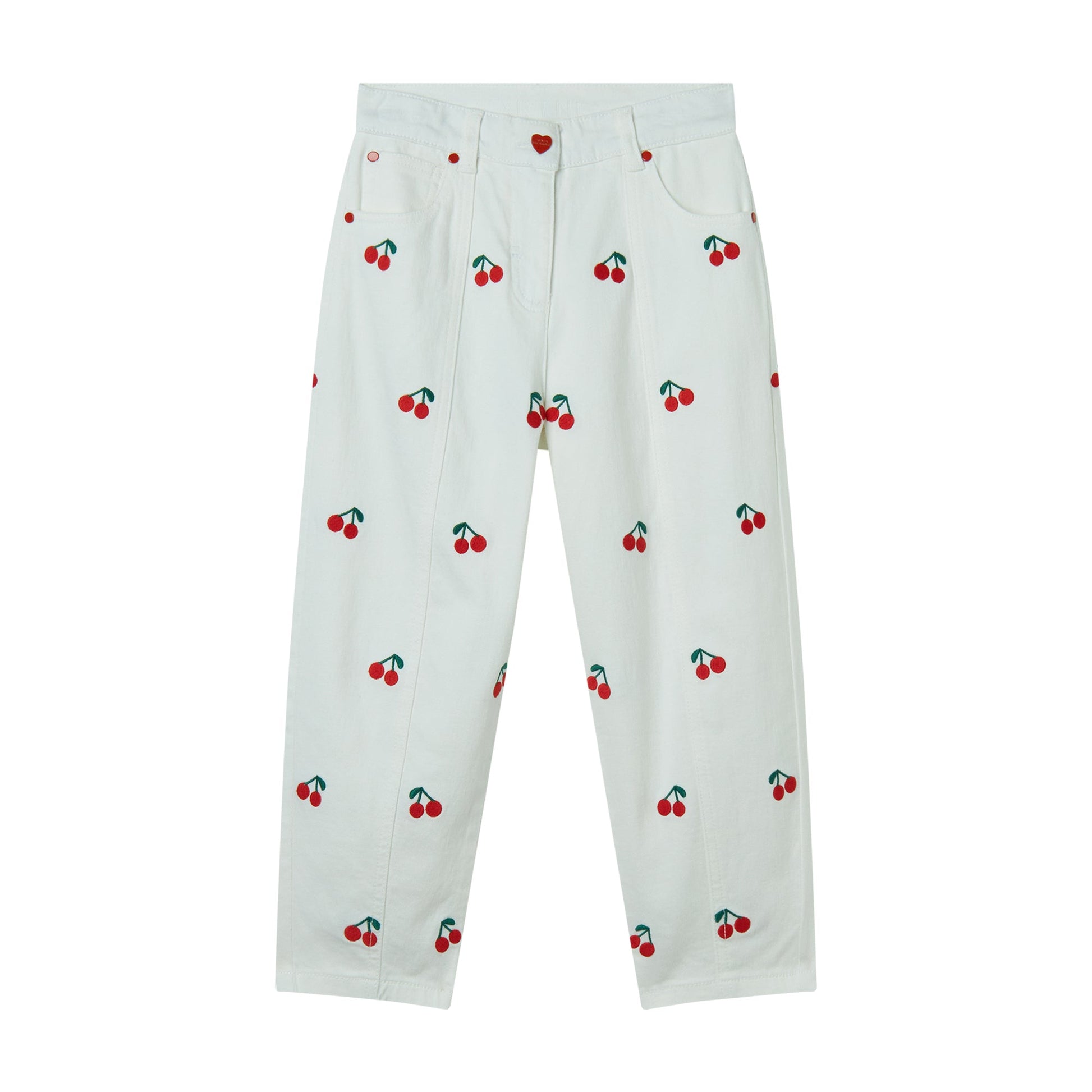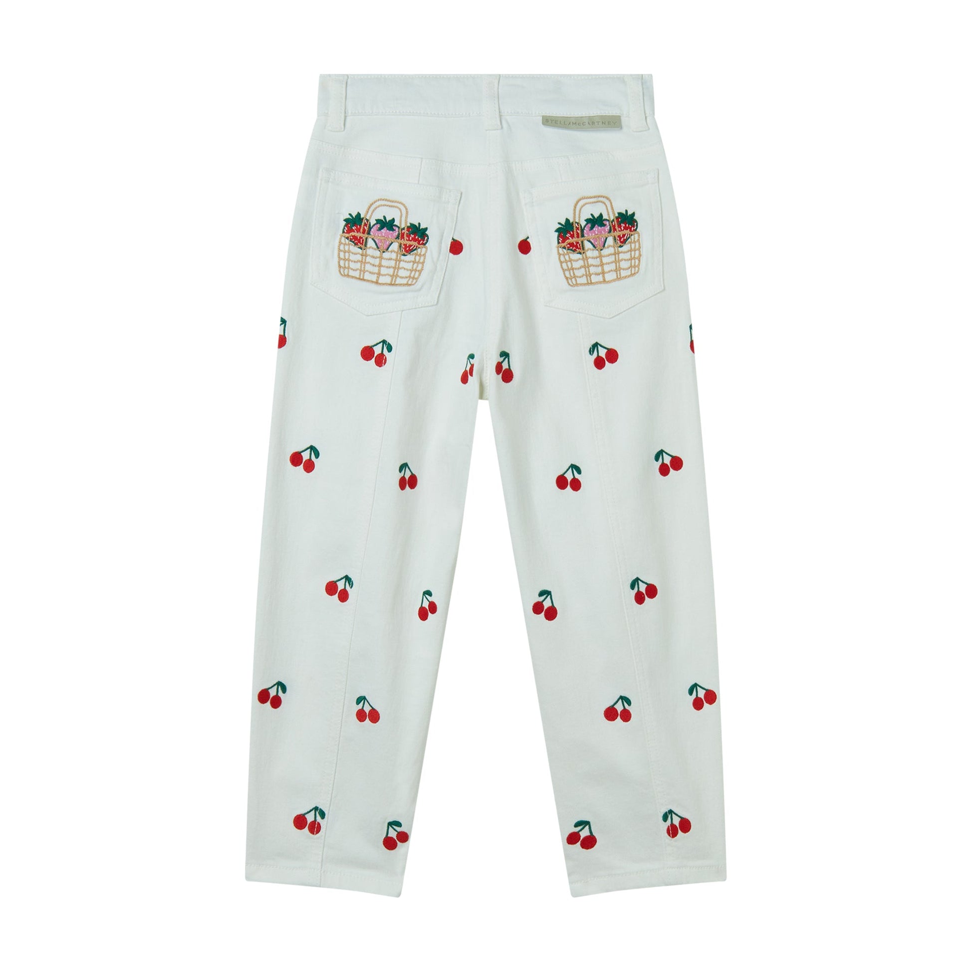 女童白色樱桃刺绣牛仔裤