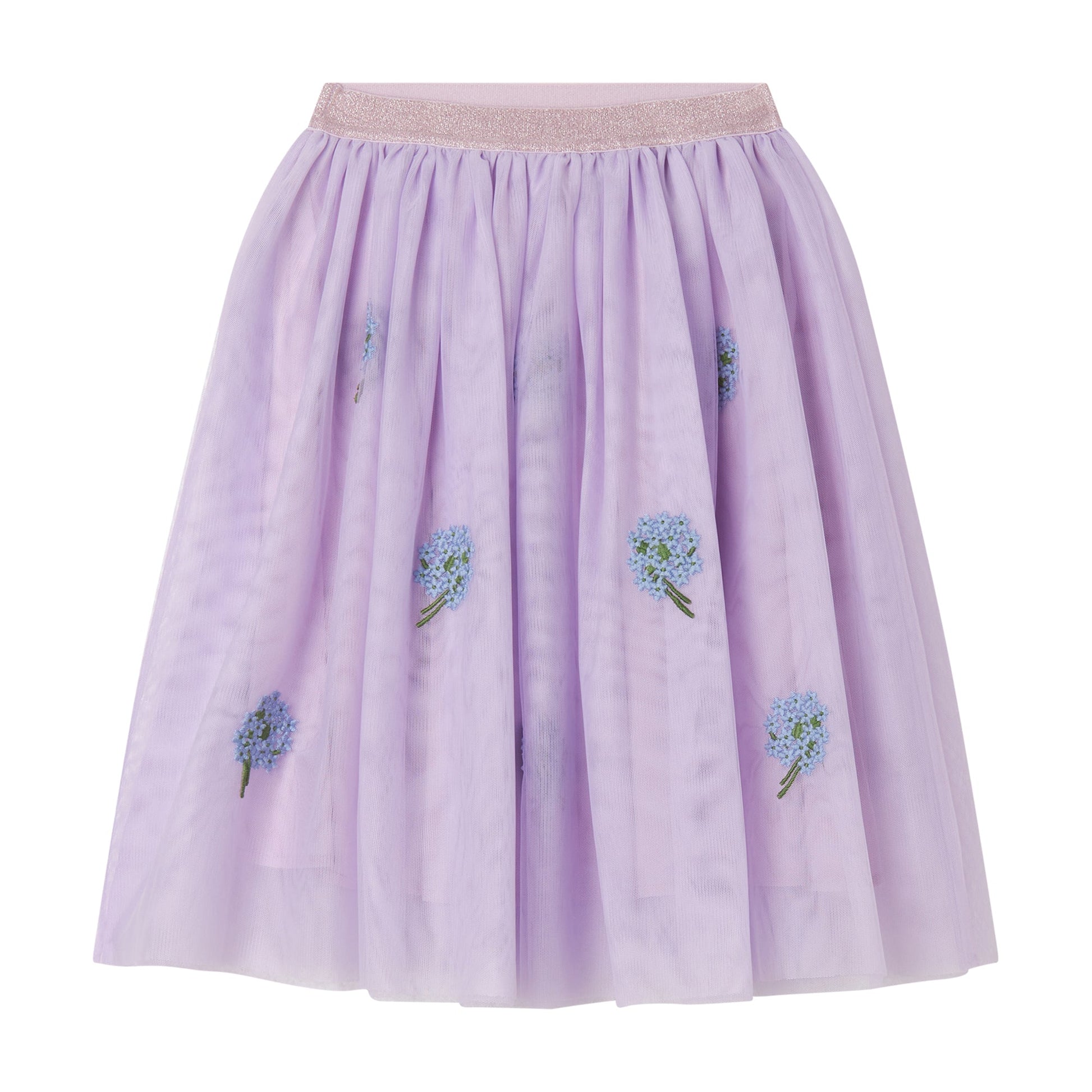 女童紫色刺绣碎花蓬松短裙