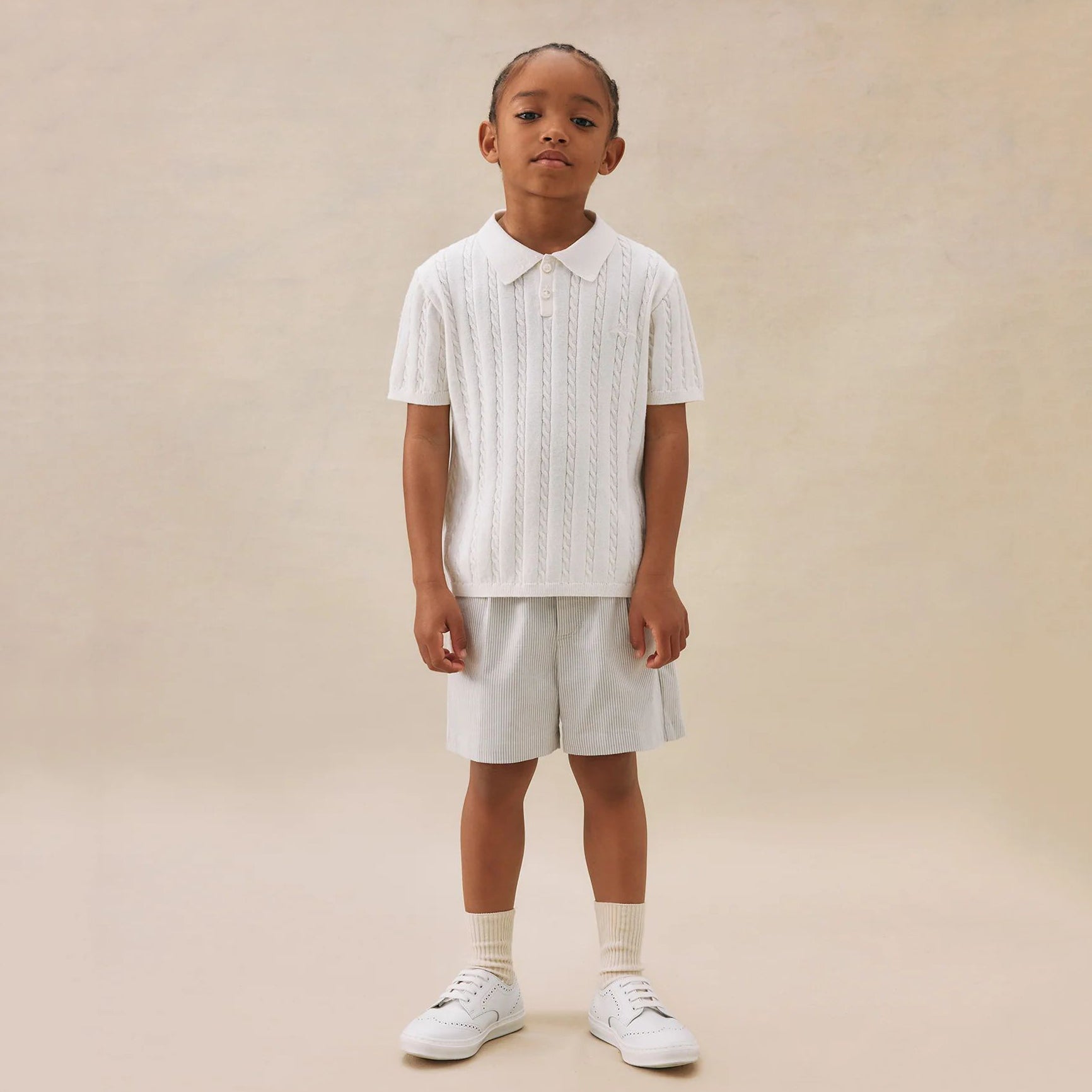 女童米灰色条纹棉短裤