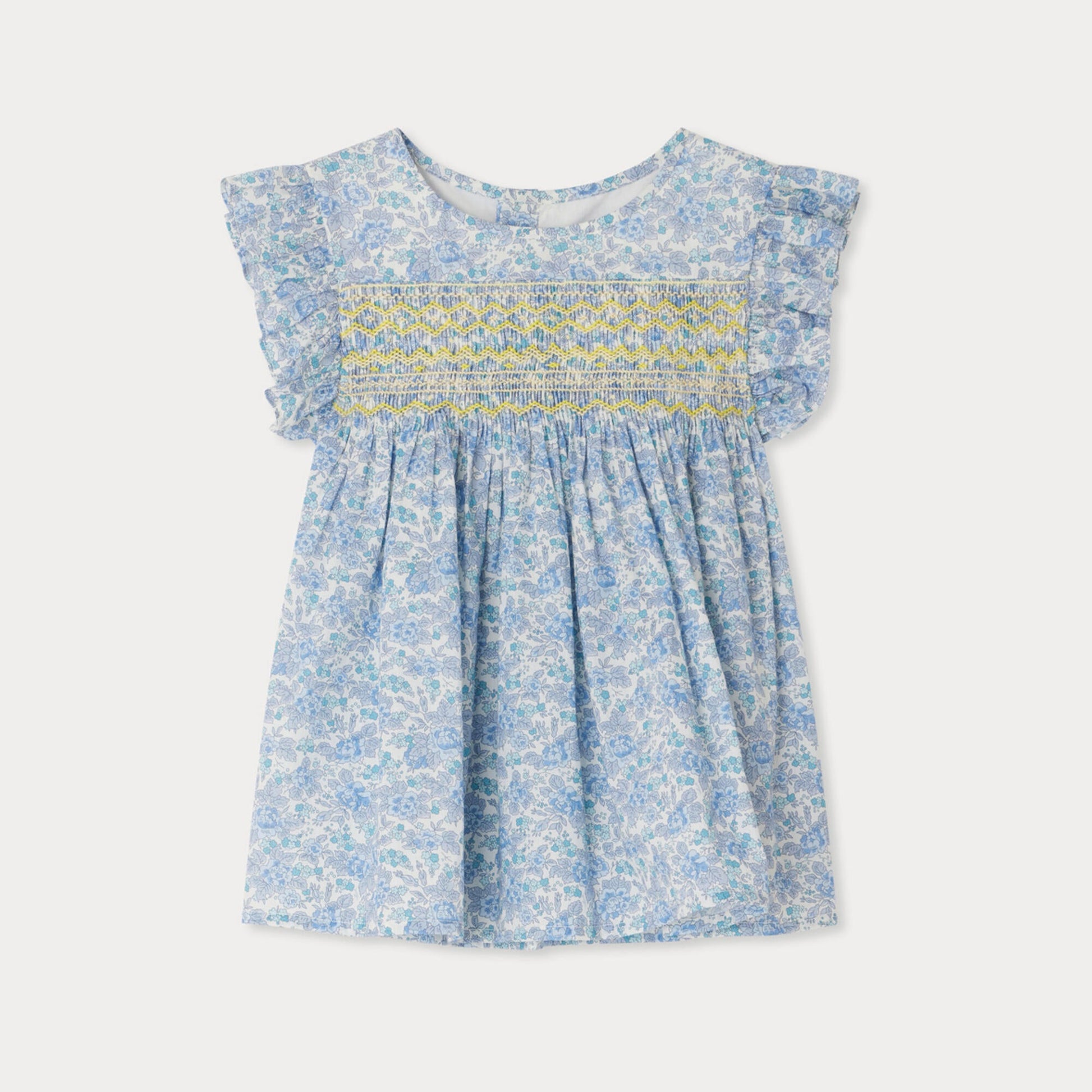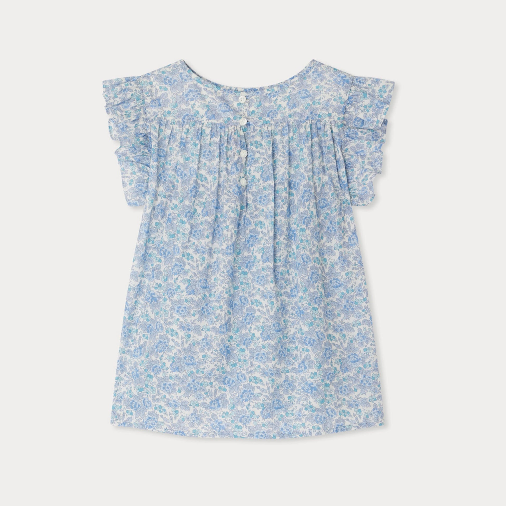 女童蓝色碎花棉衬衫