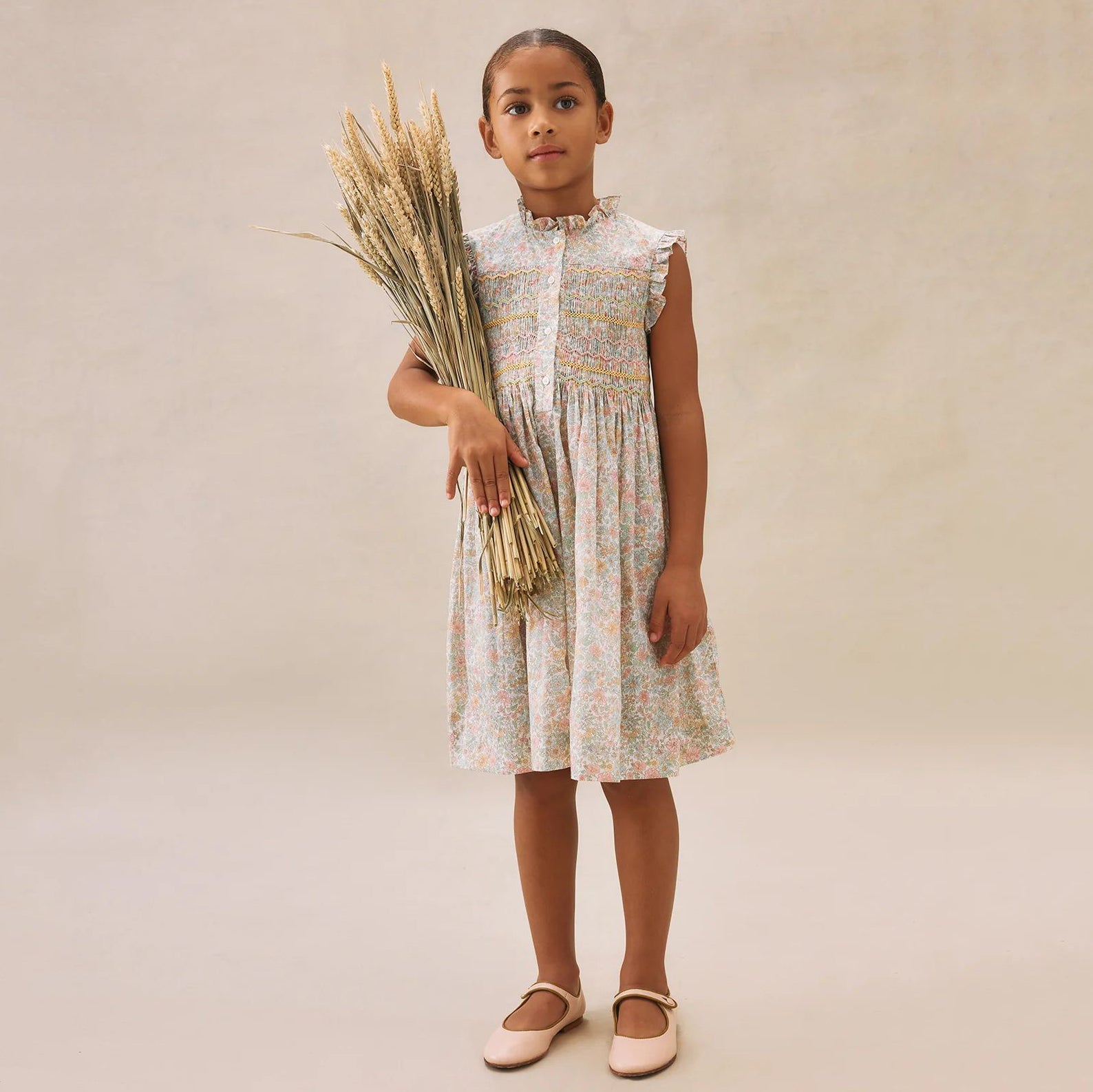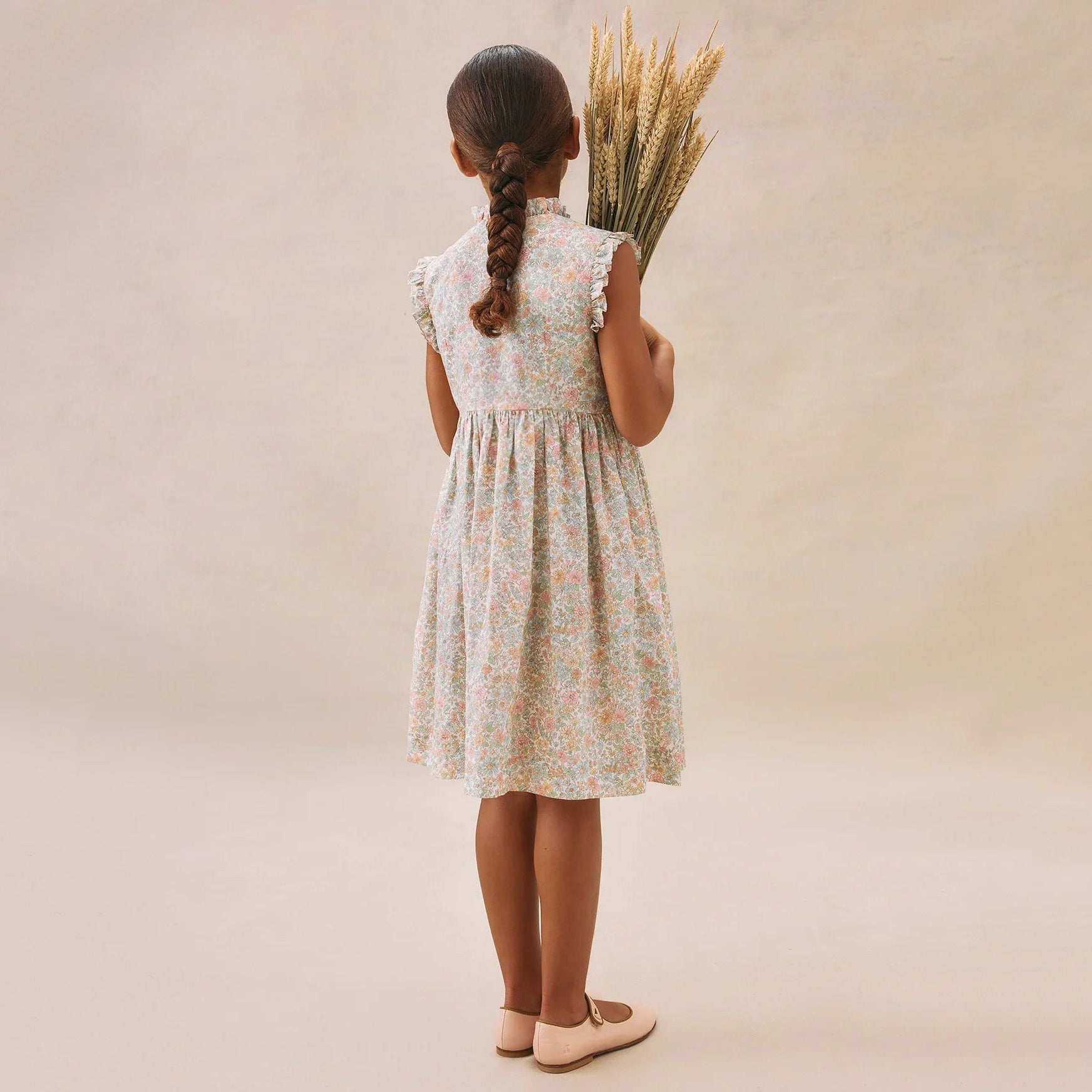 女童粉色碎花棉连衣裙