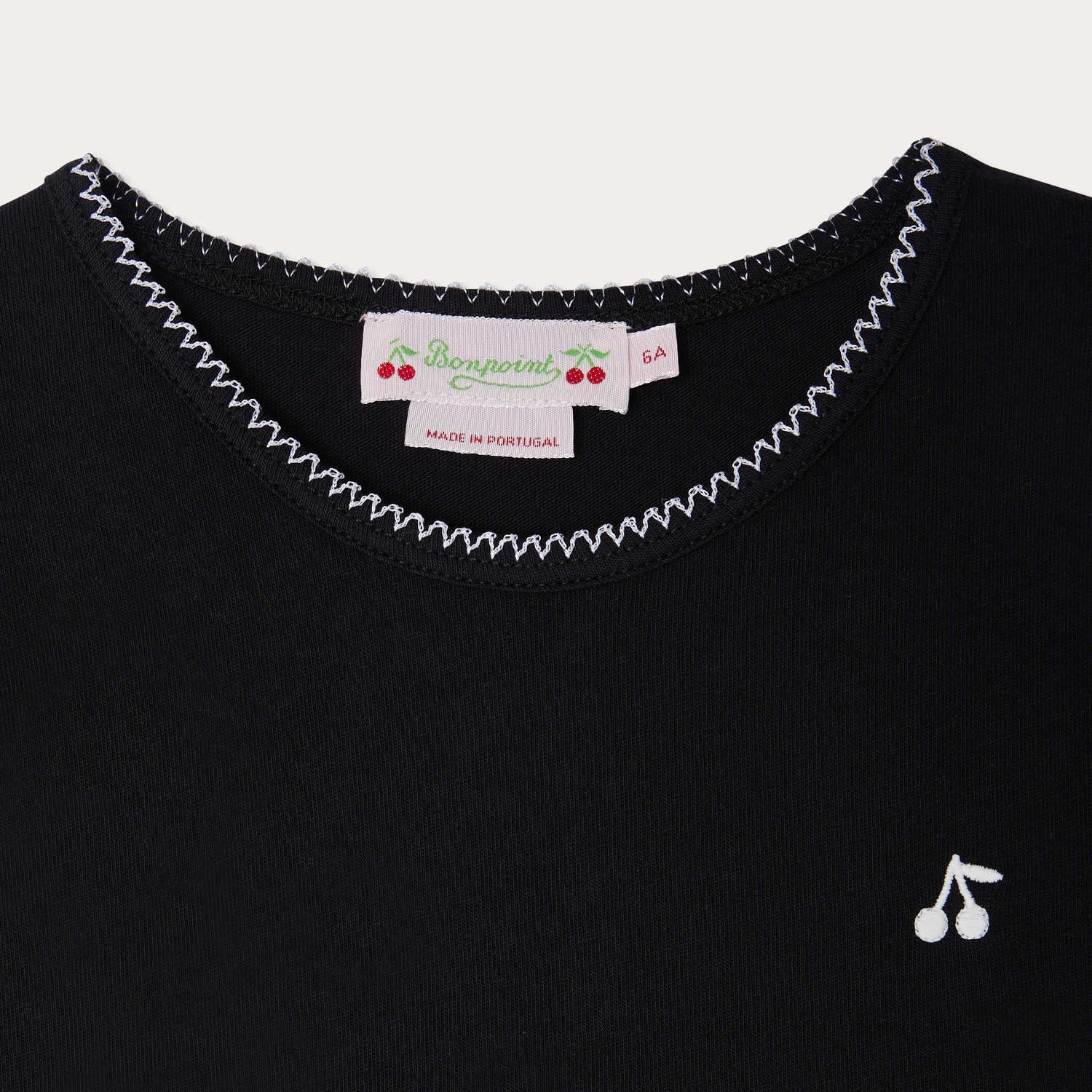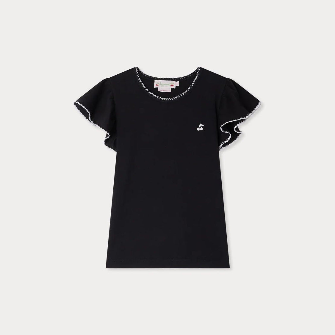 女童黑色樱桃刺绣棉T恤