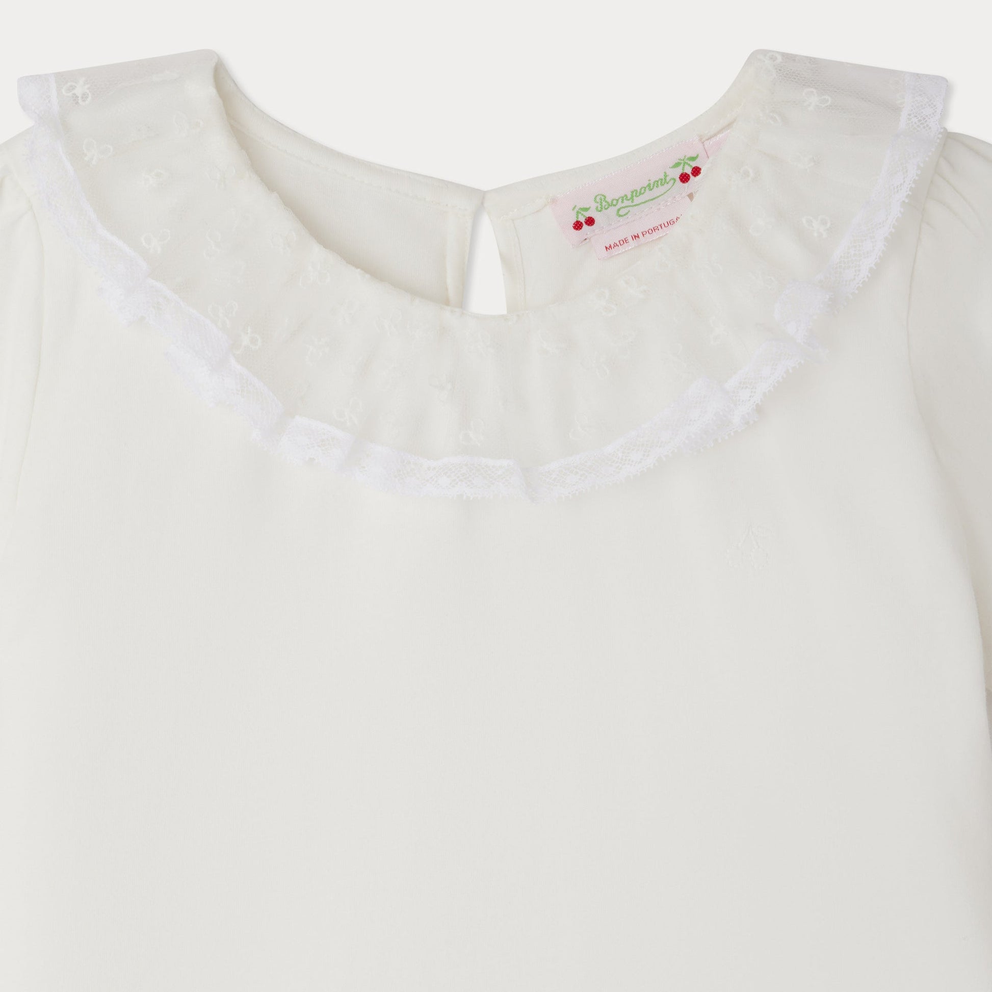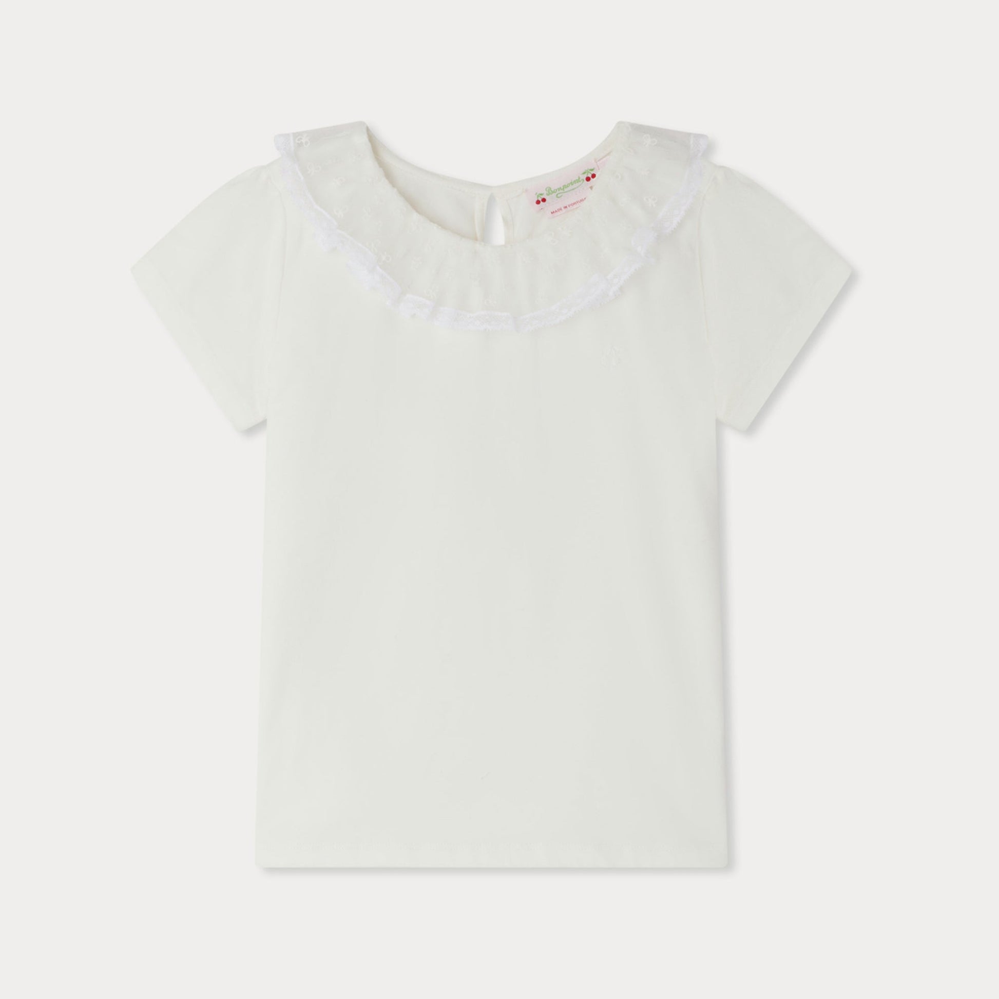 女童白色荷叶领棉T恤