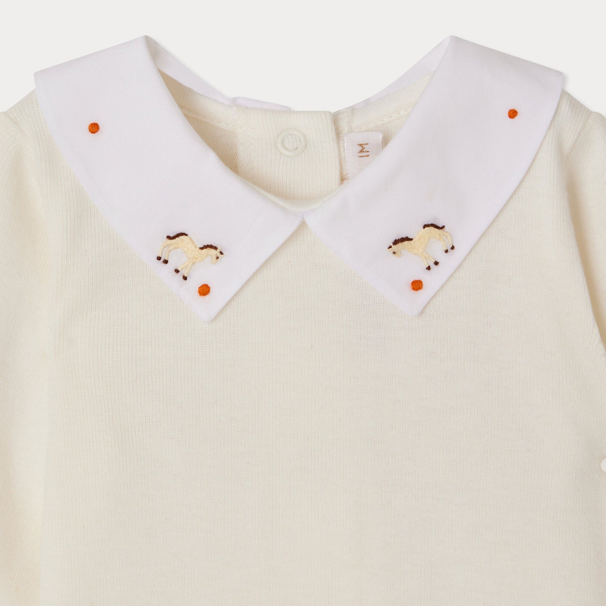 男婴象牙白刺绣棉连体衣