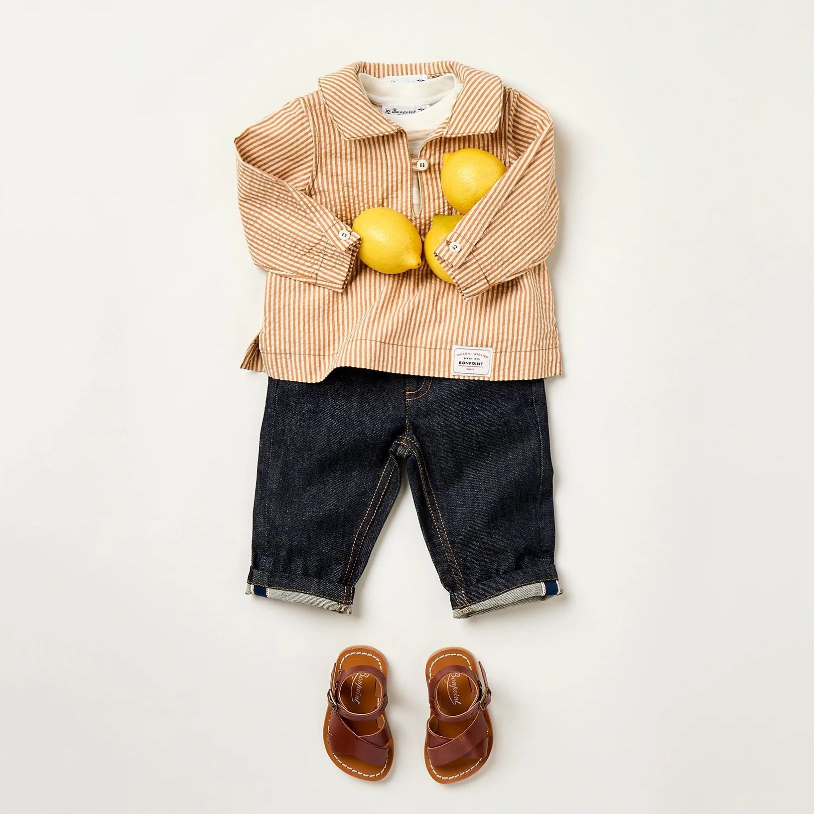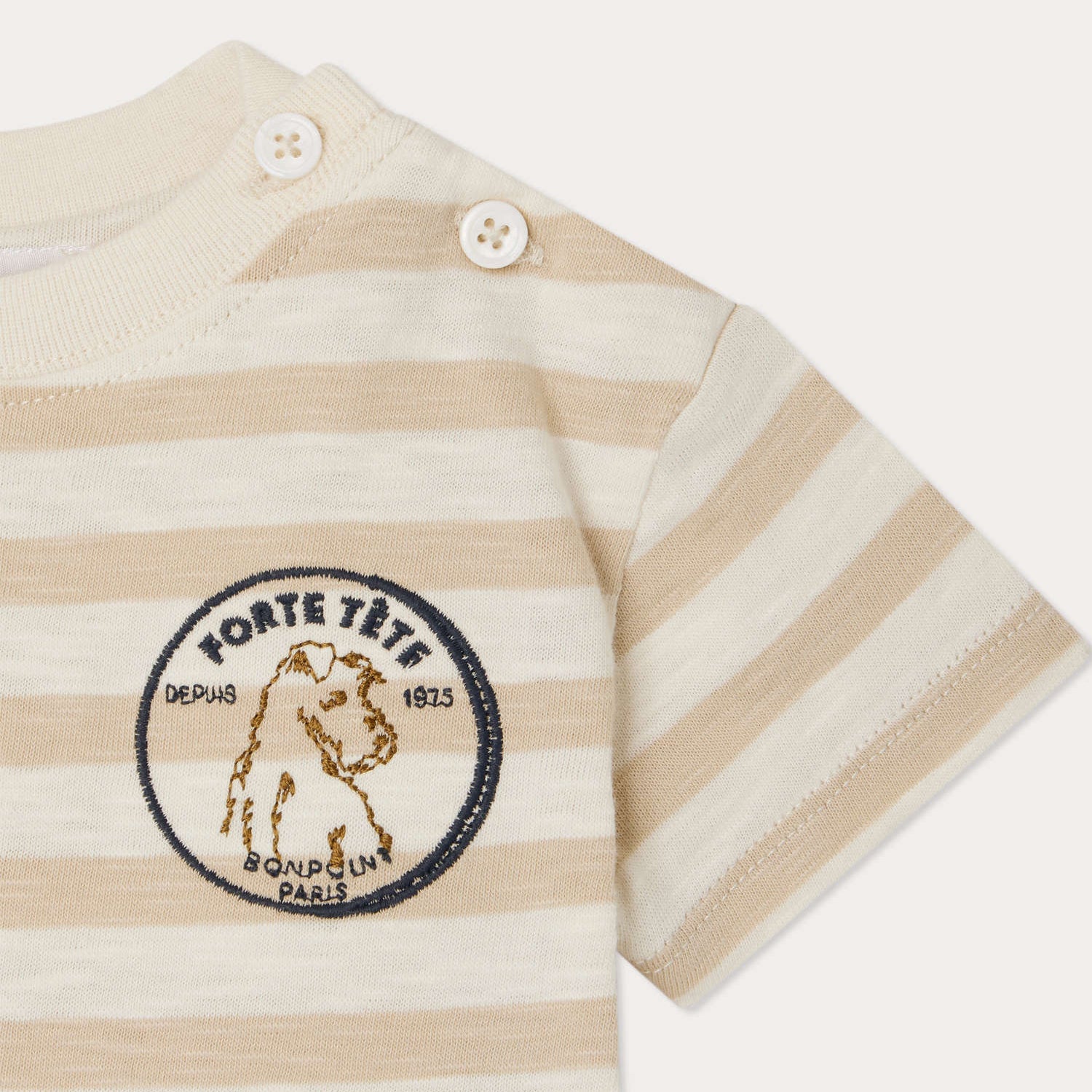 男婴米色条纹棉T恤