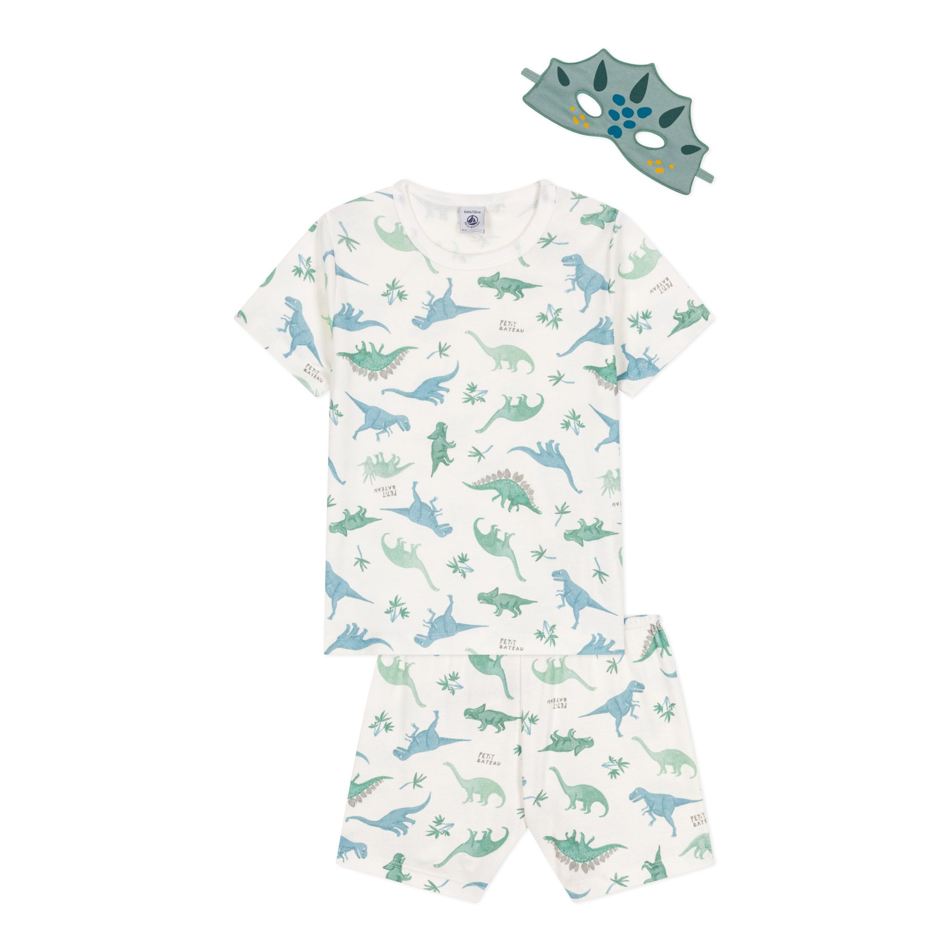 男童绿色印花恐龙棉睡衣套装