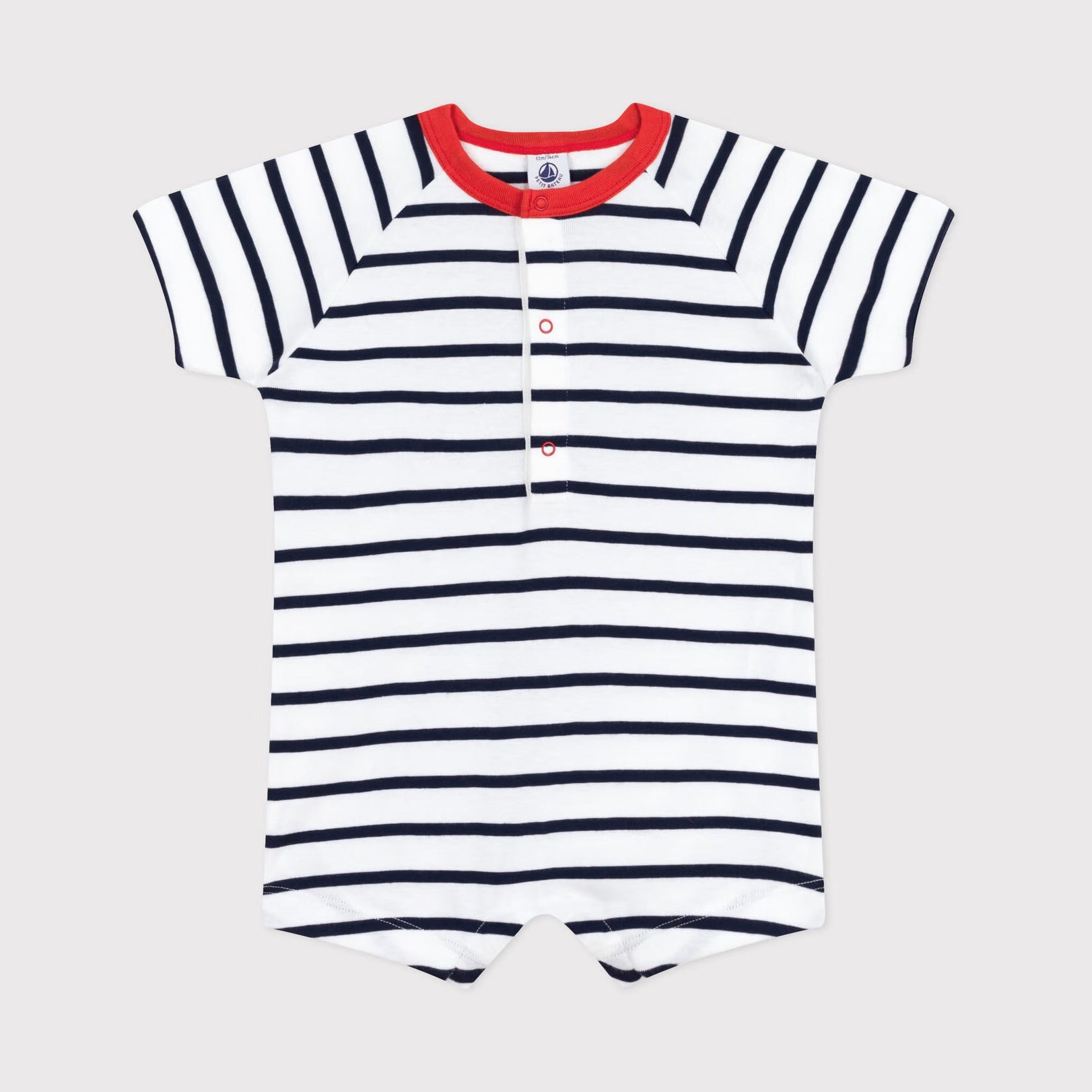 婴儿深蓝色条纹棉连体衣