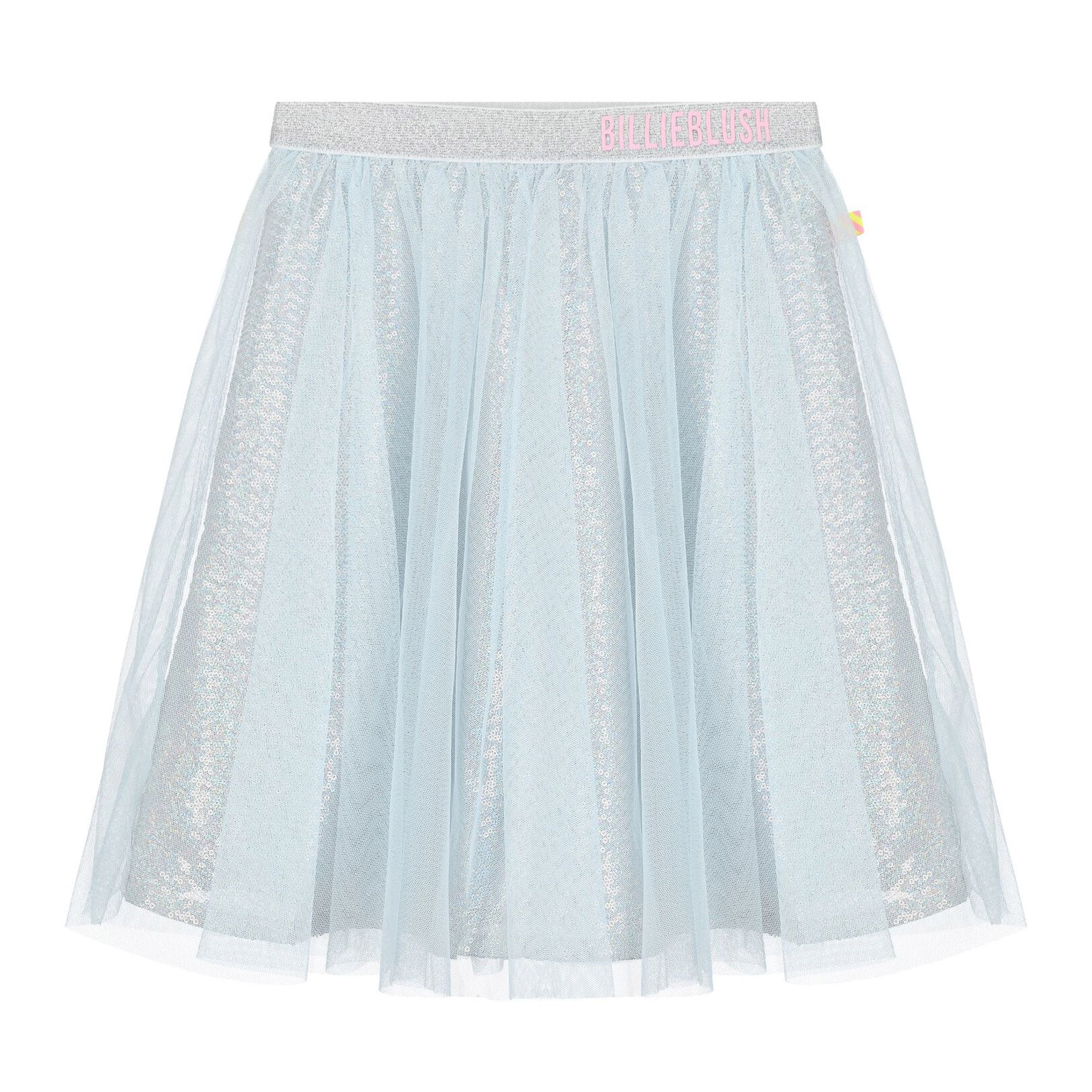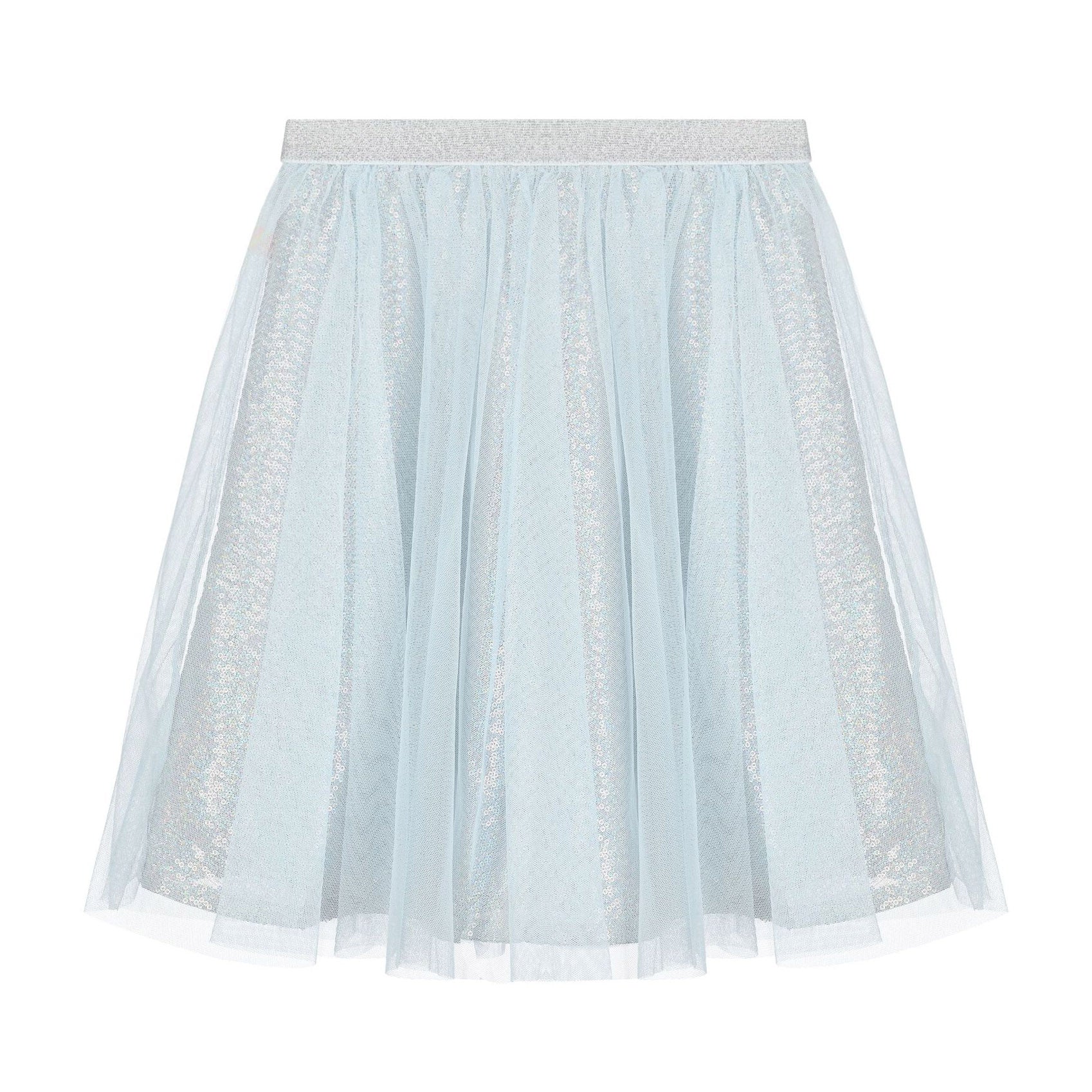 女童冰蓝色亮片薄纱短裙