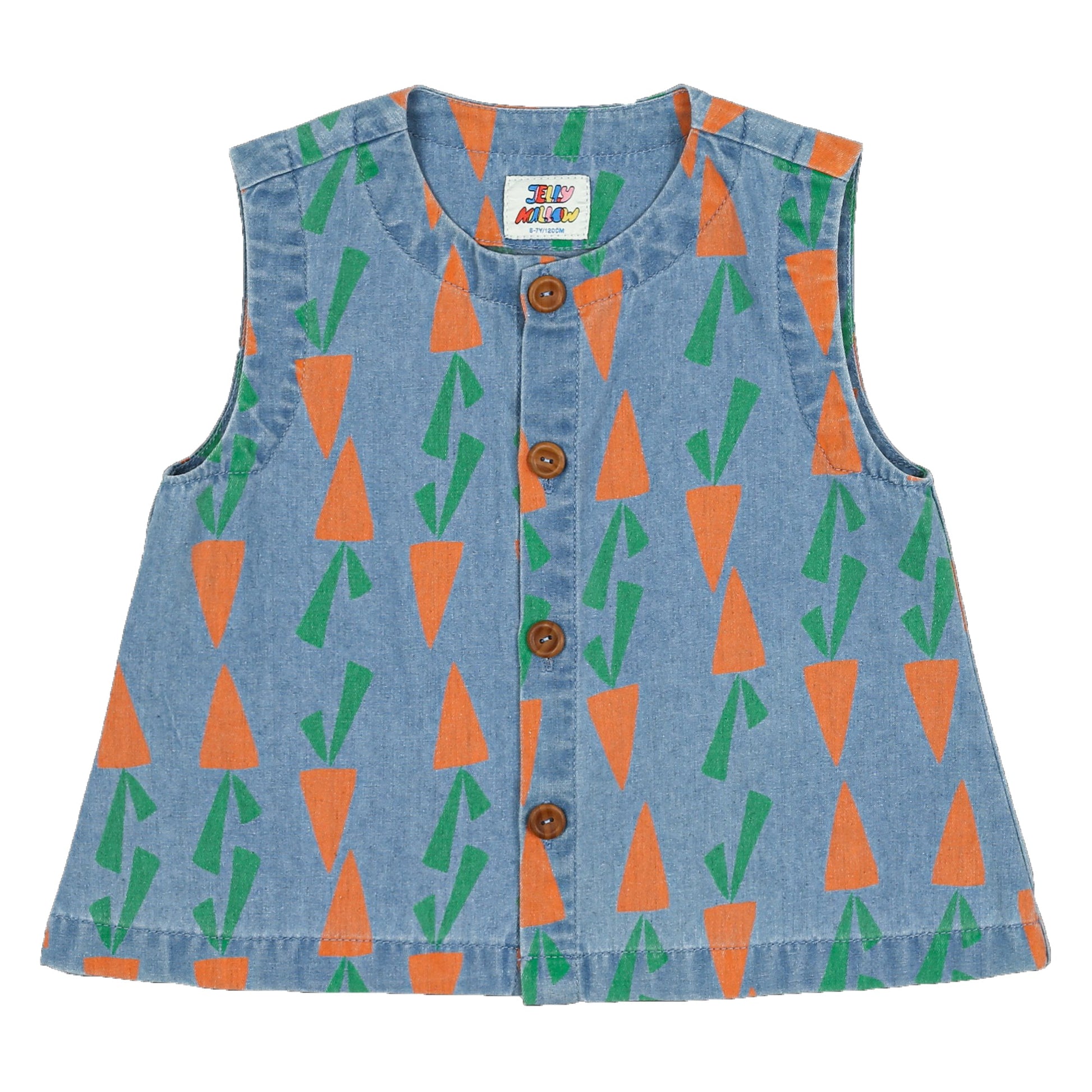 女童蓝色胡萝卜印花牛仔背心