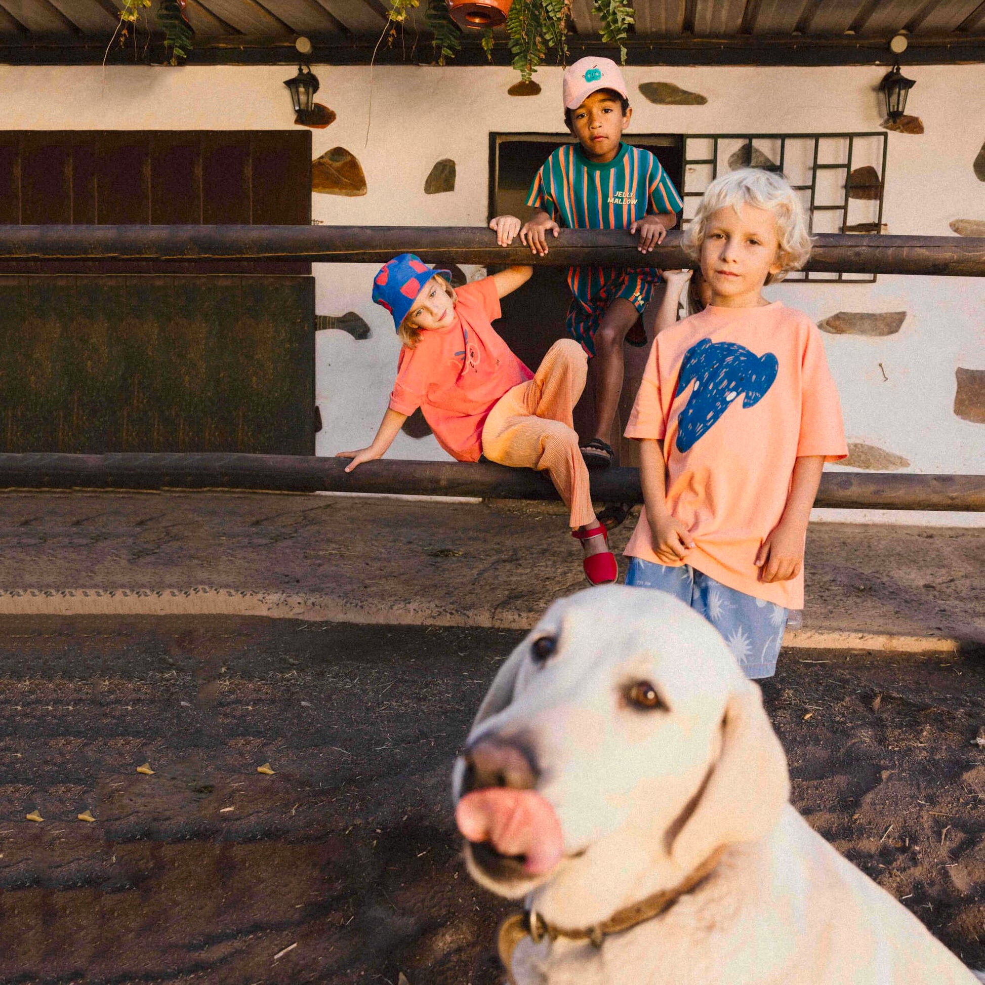 女童珊瑚粉色印花棉T恤