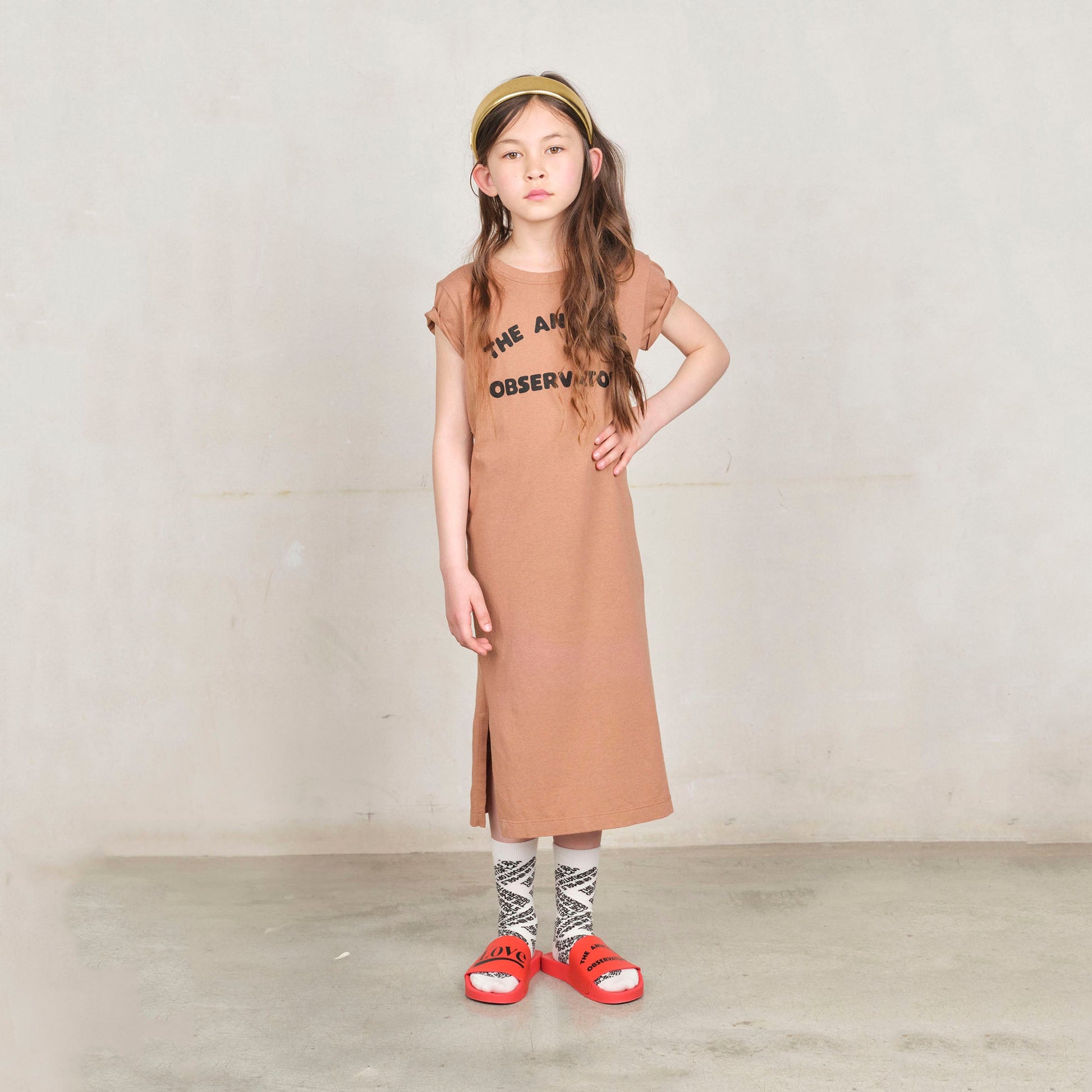 女童棕色Logo棉连衣裙