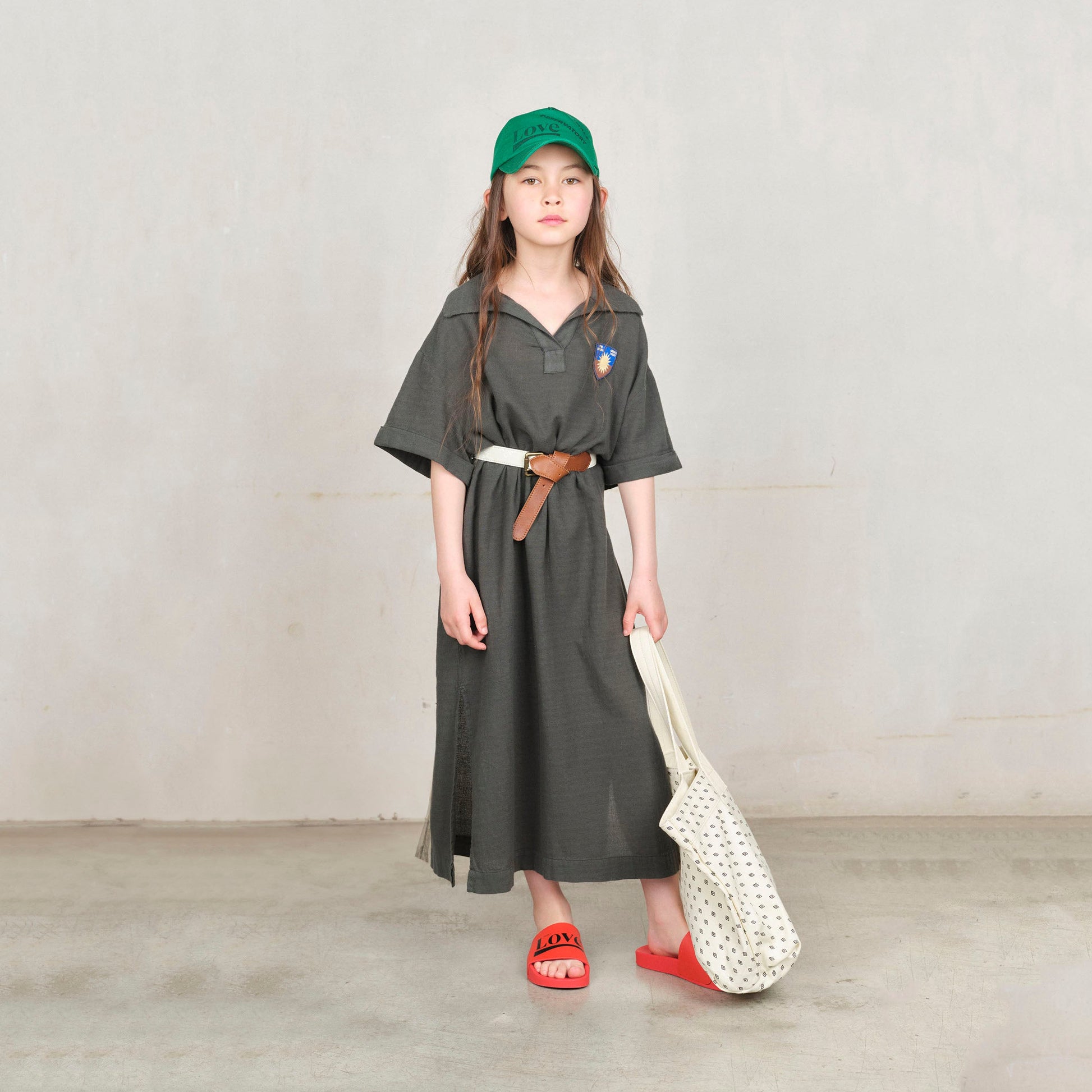 女童深绿色棉连衣裙