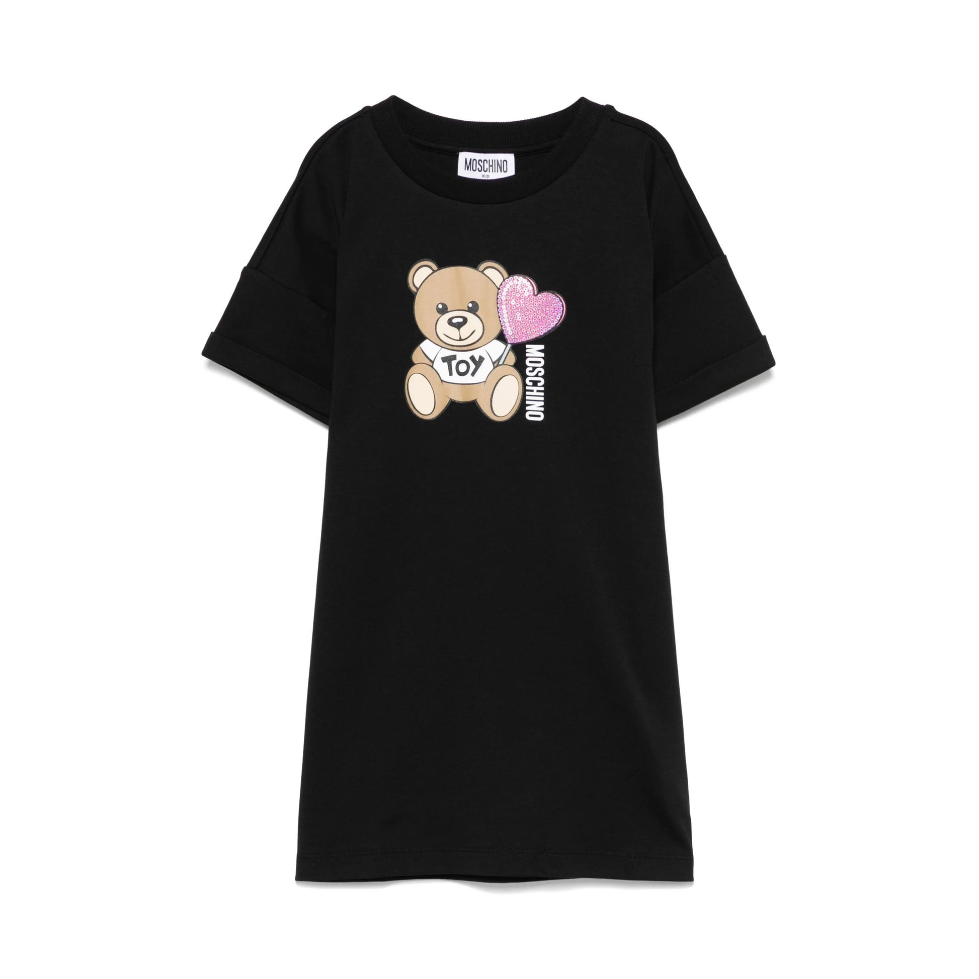 女童黑色泰迪熊印花棉连衣裙