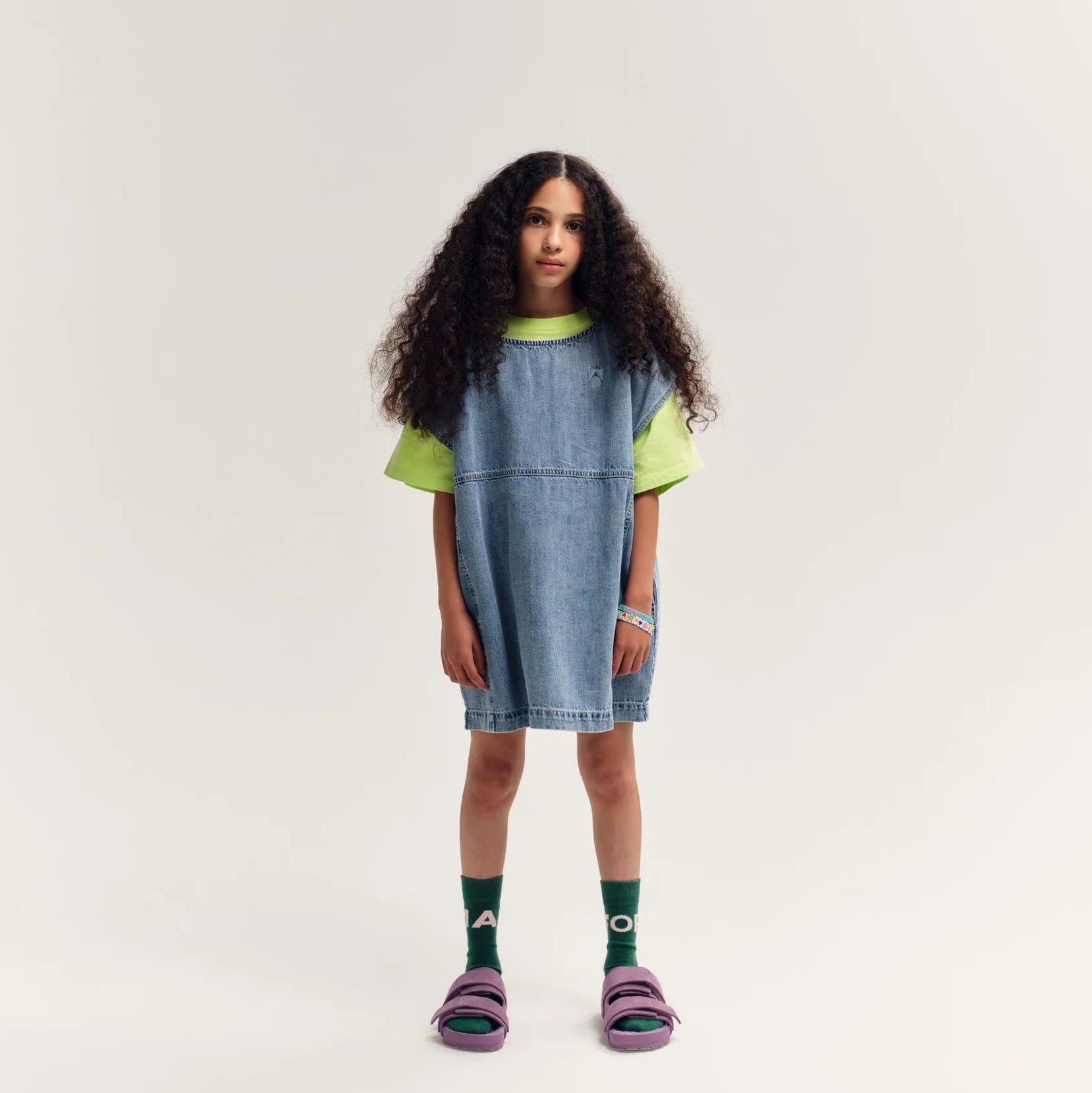 女童蓝色牛仔背心裙