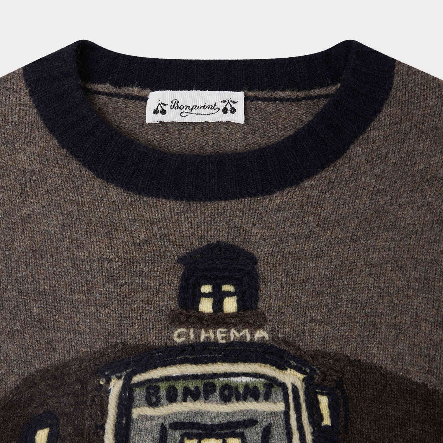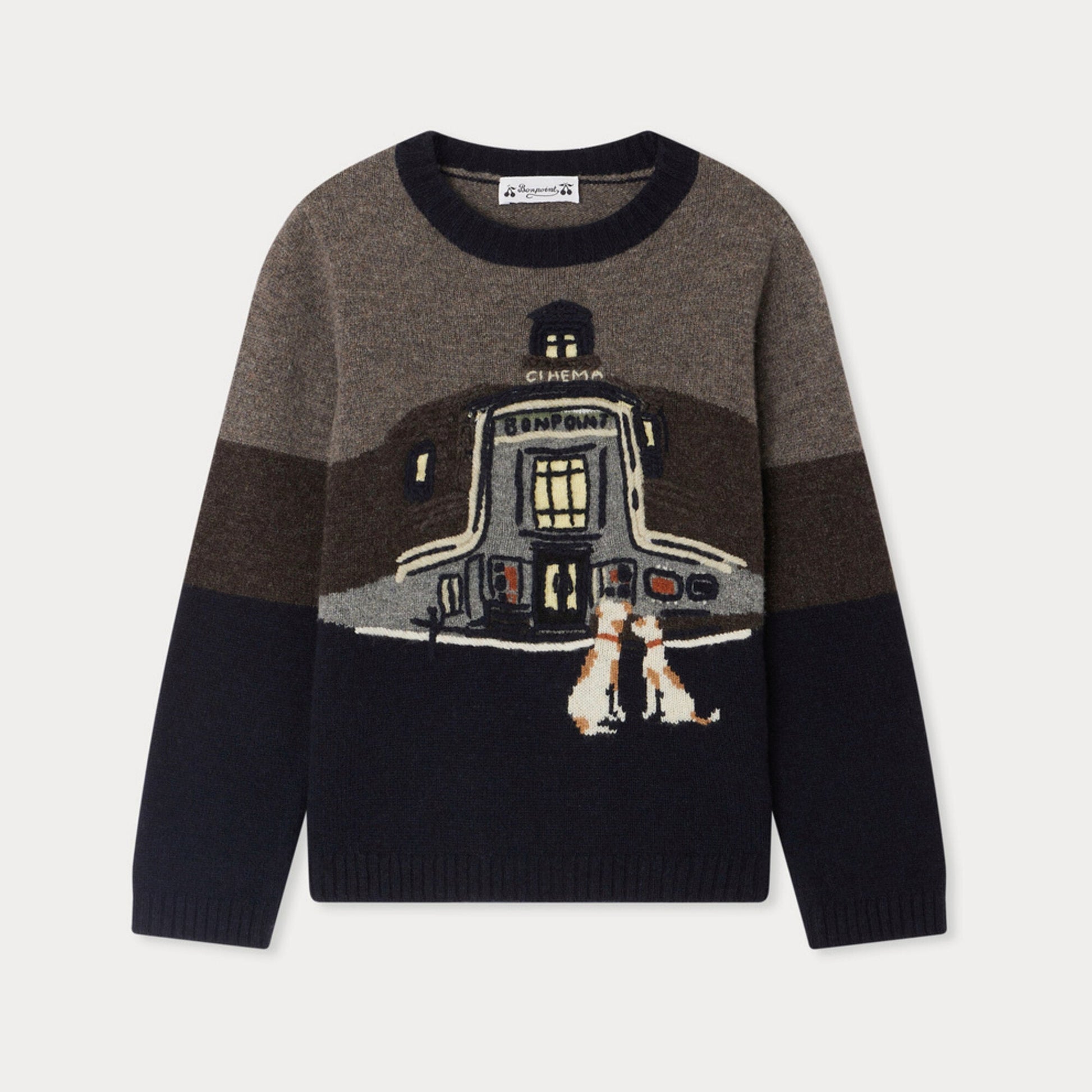 男童棕色提花羊毛毛衣