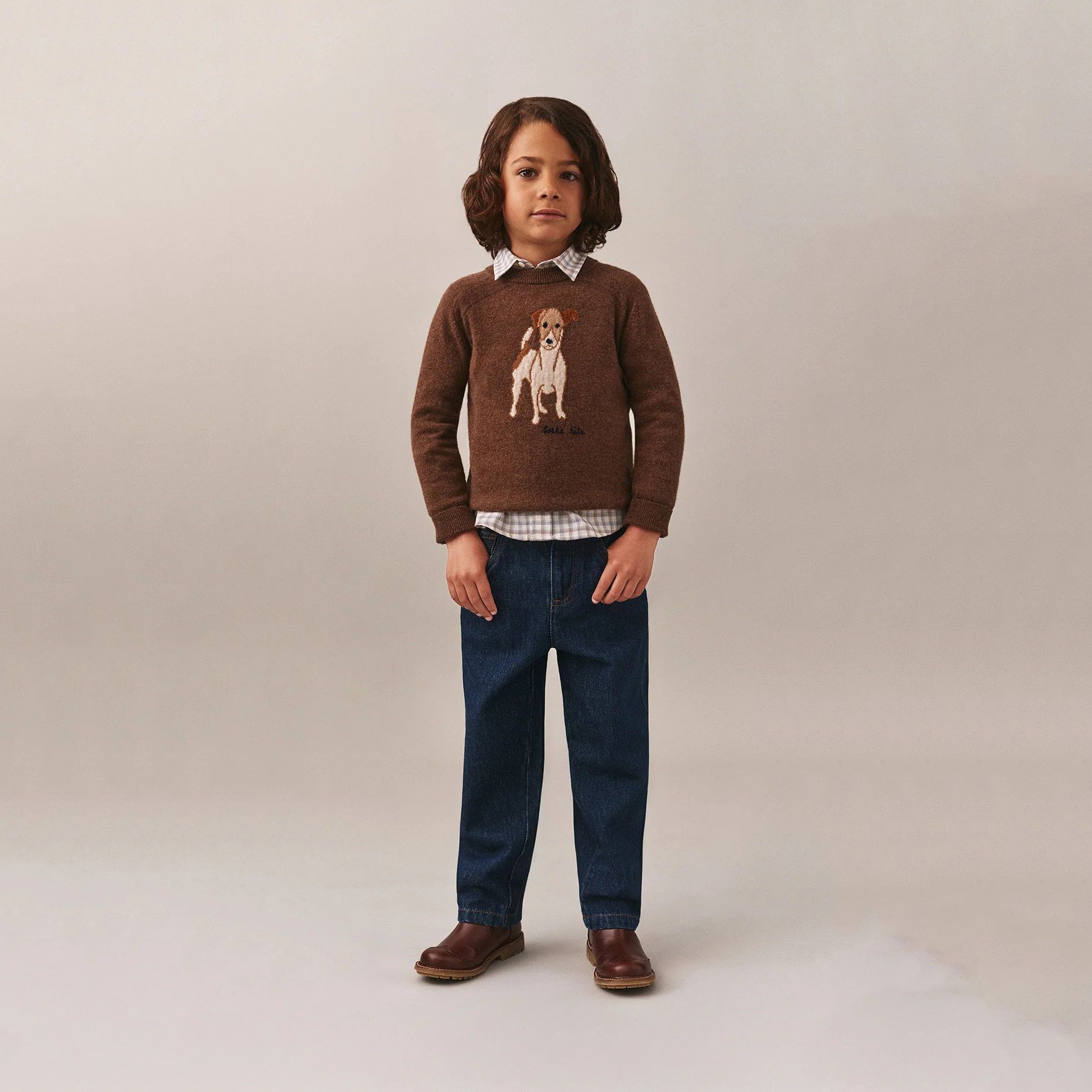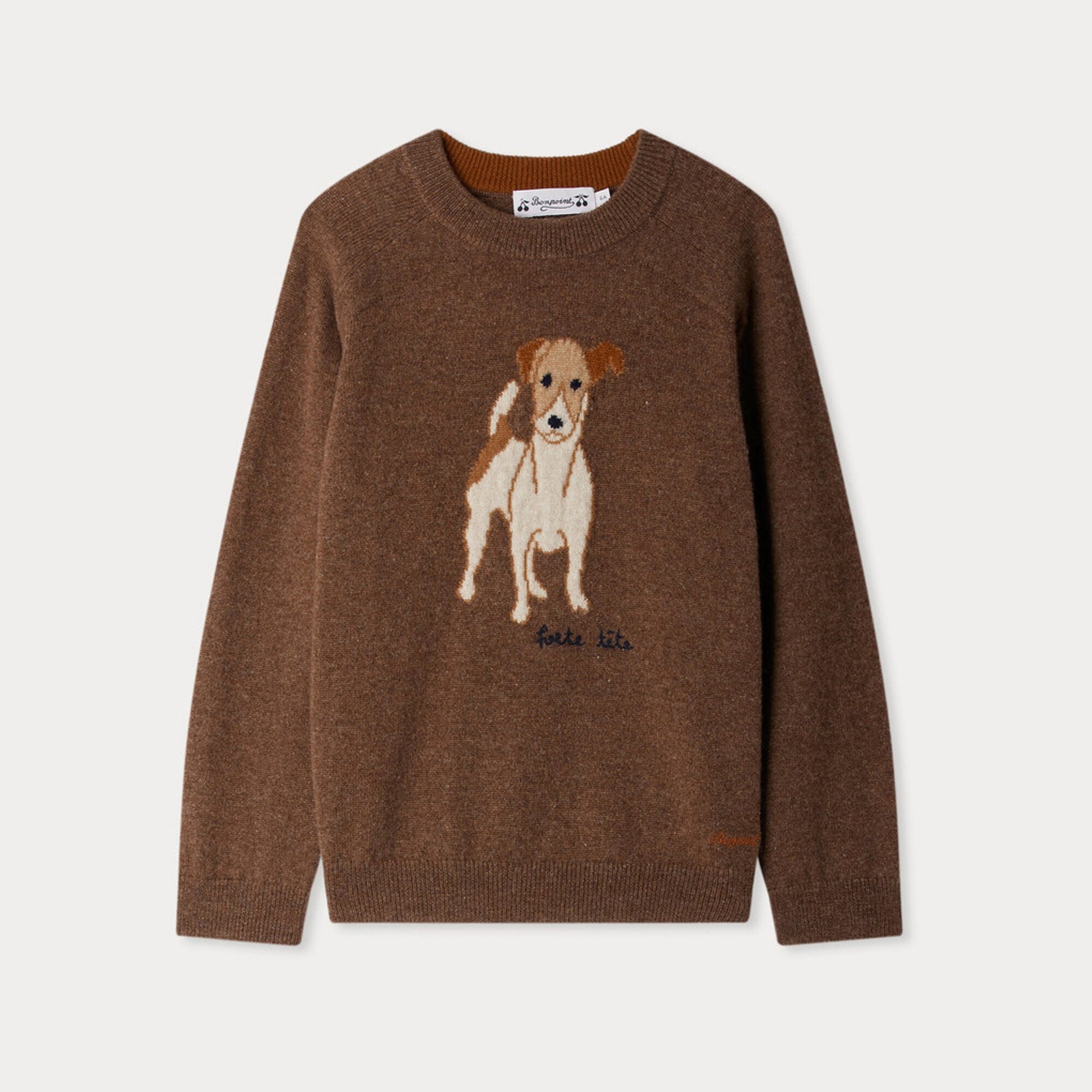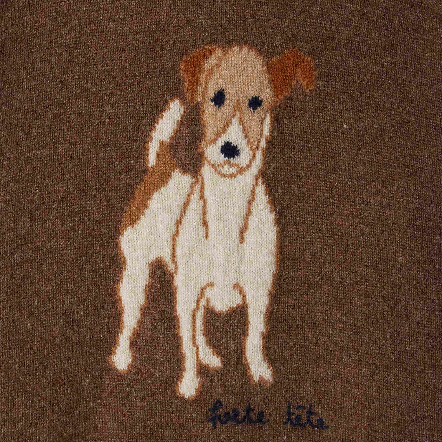 男童棕色小狗提花羊绒毛衣