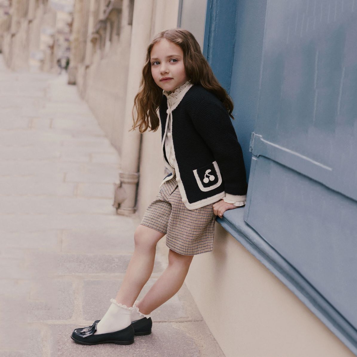 女童藏蓝色针织羊毛开衫