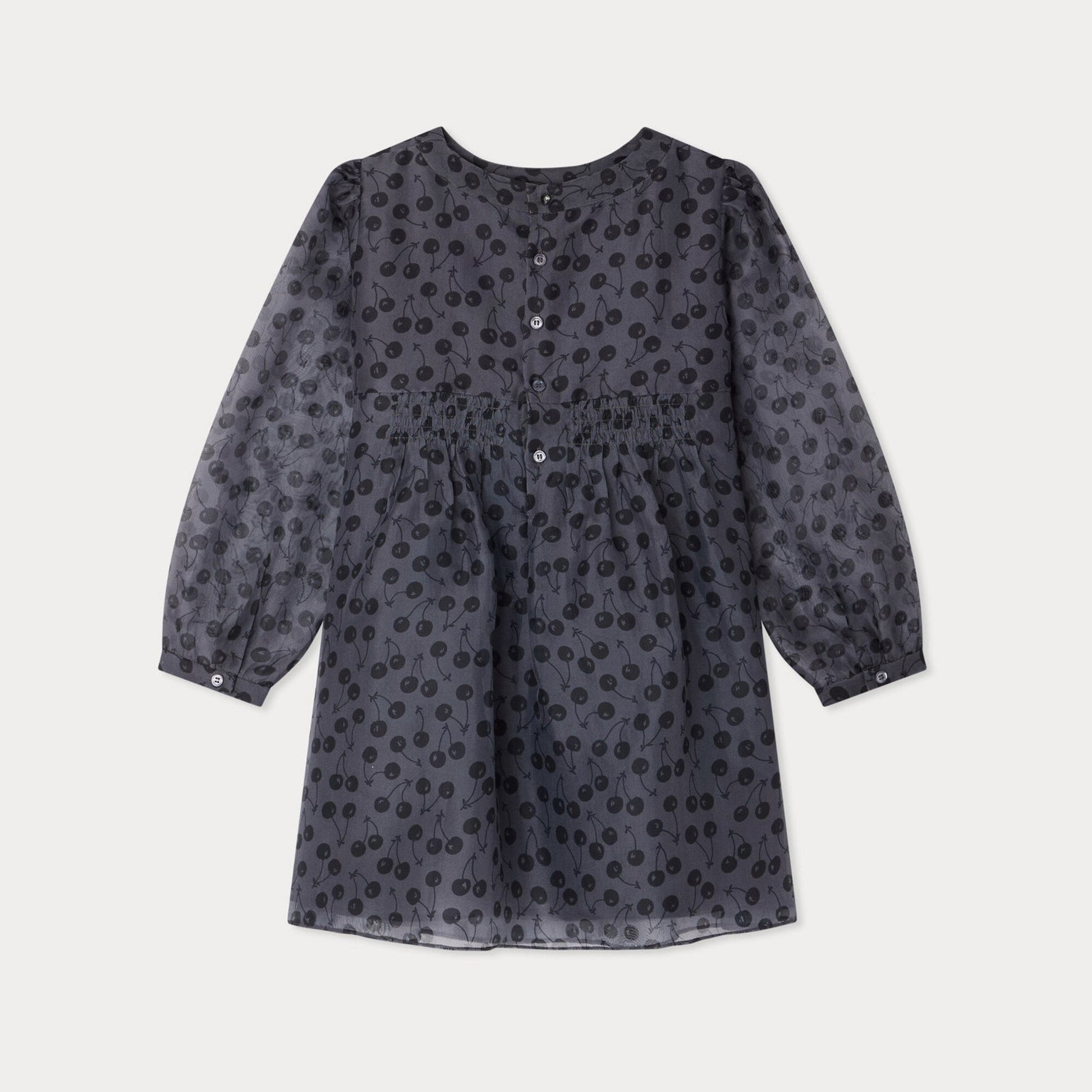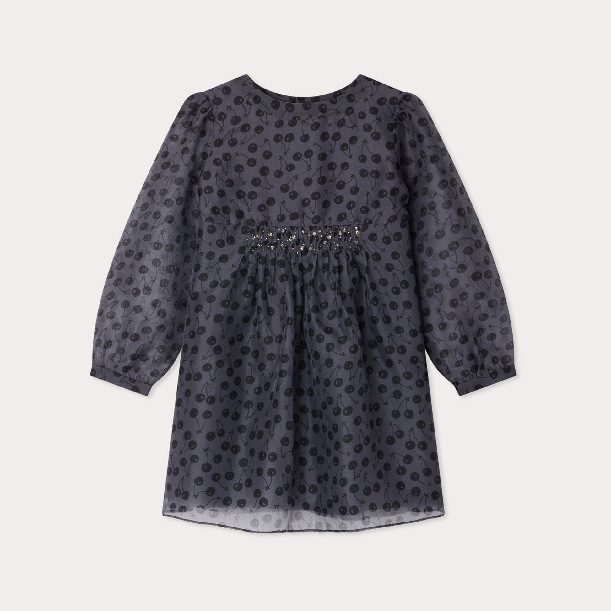 女童黑色樱桃印花真丝连衣裙