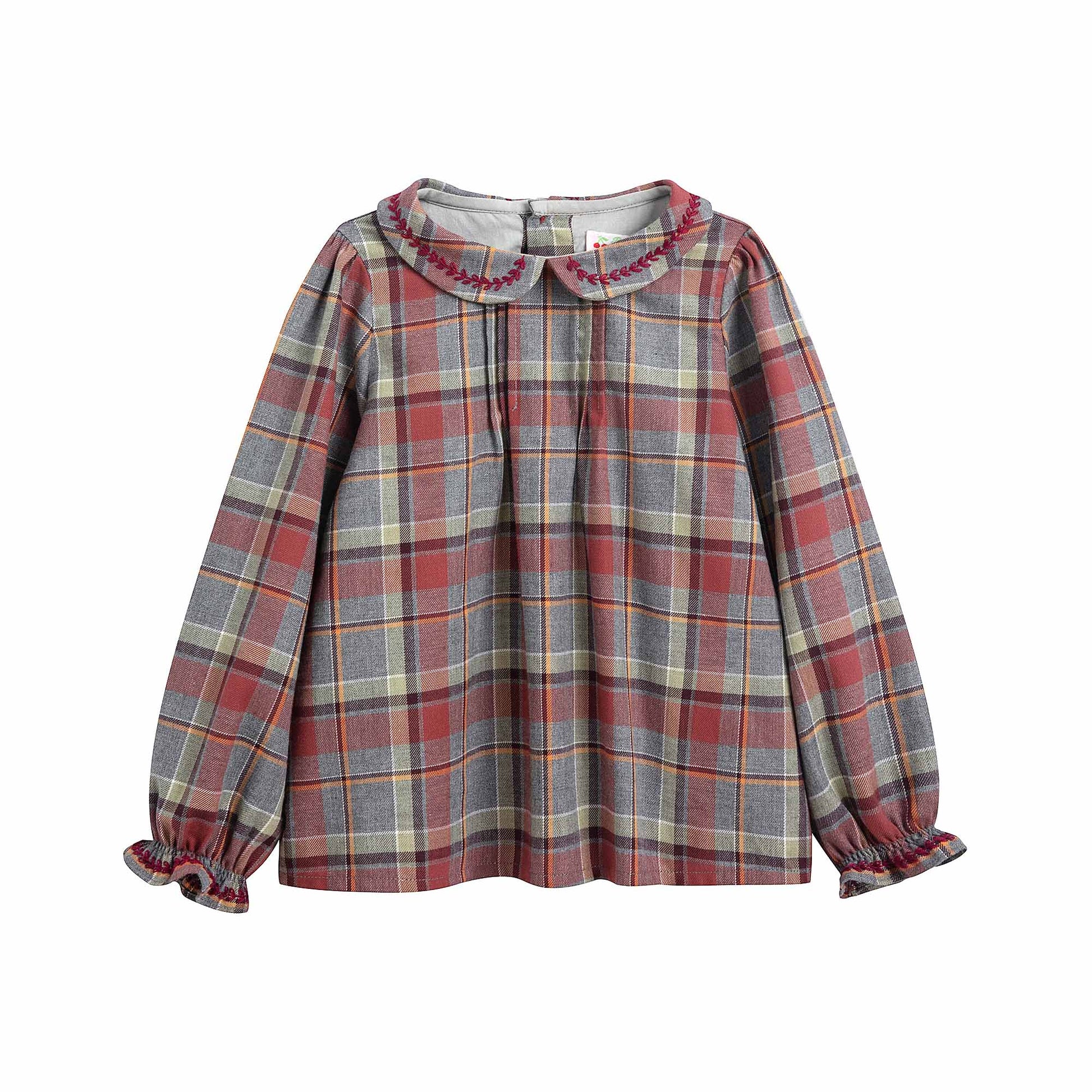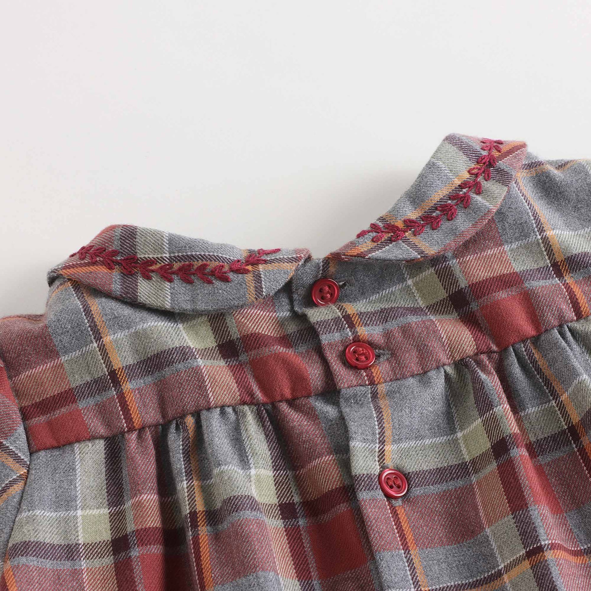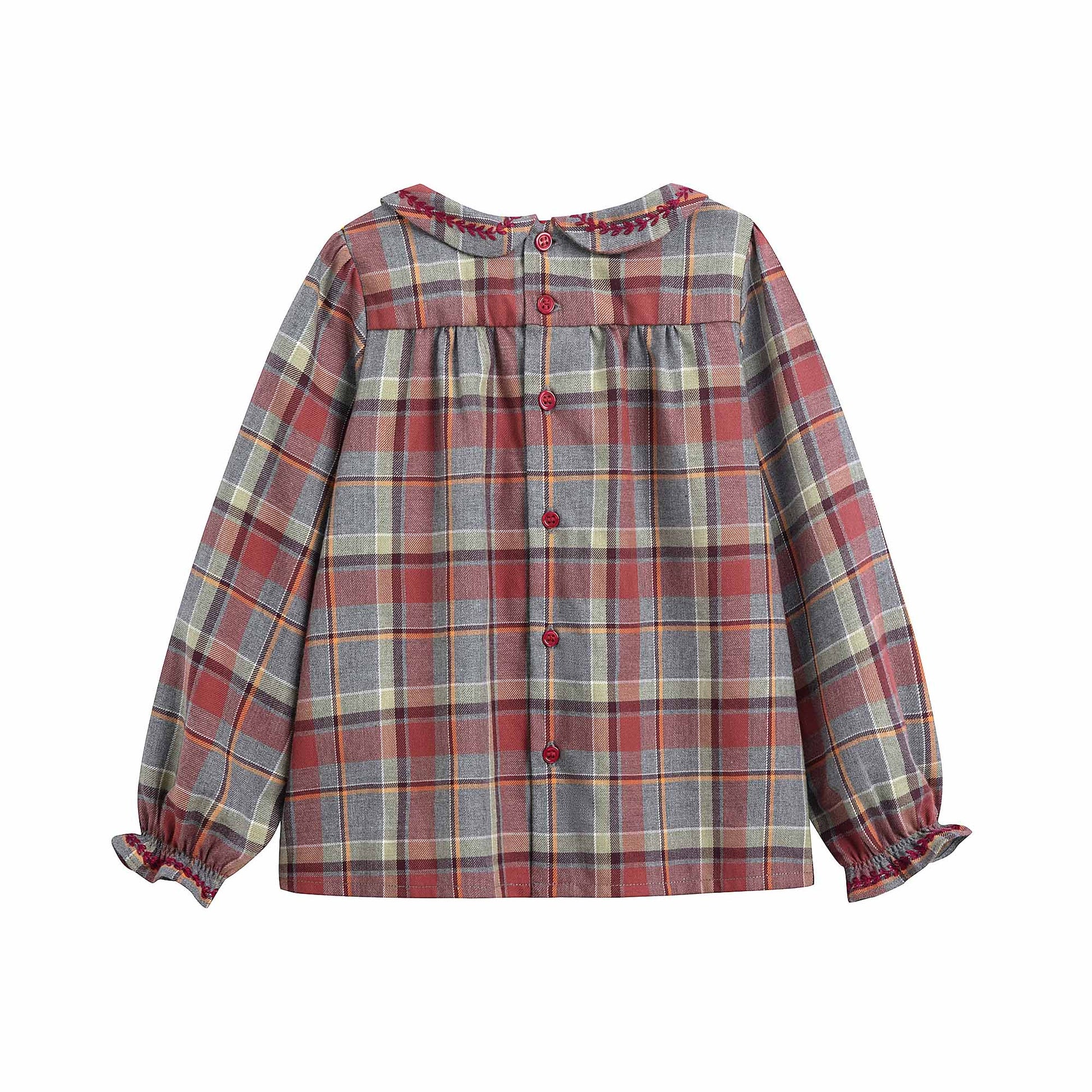 女婴酒红色格子棉衬衫