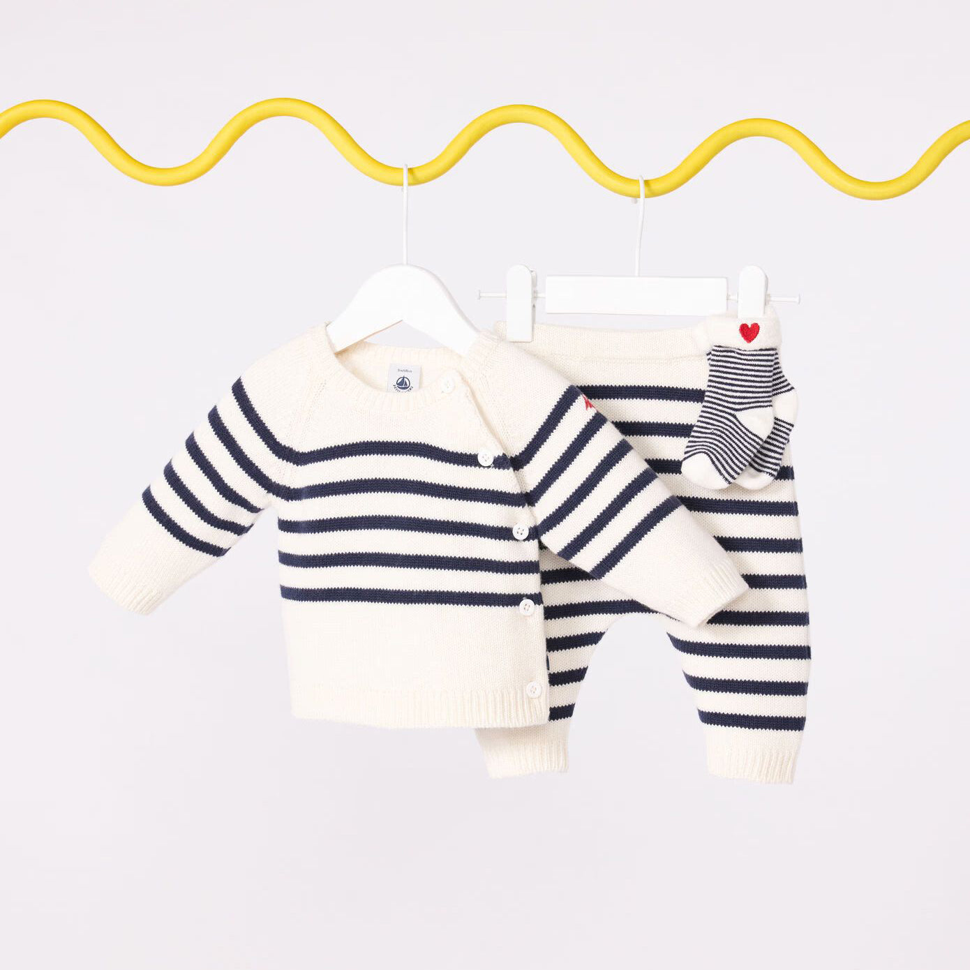 婴儿白色条纹羊毛套装