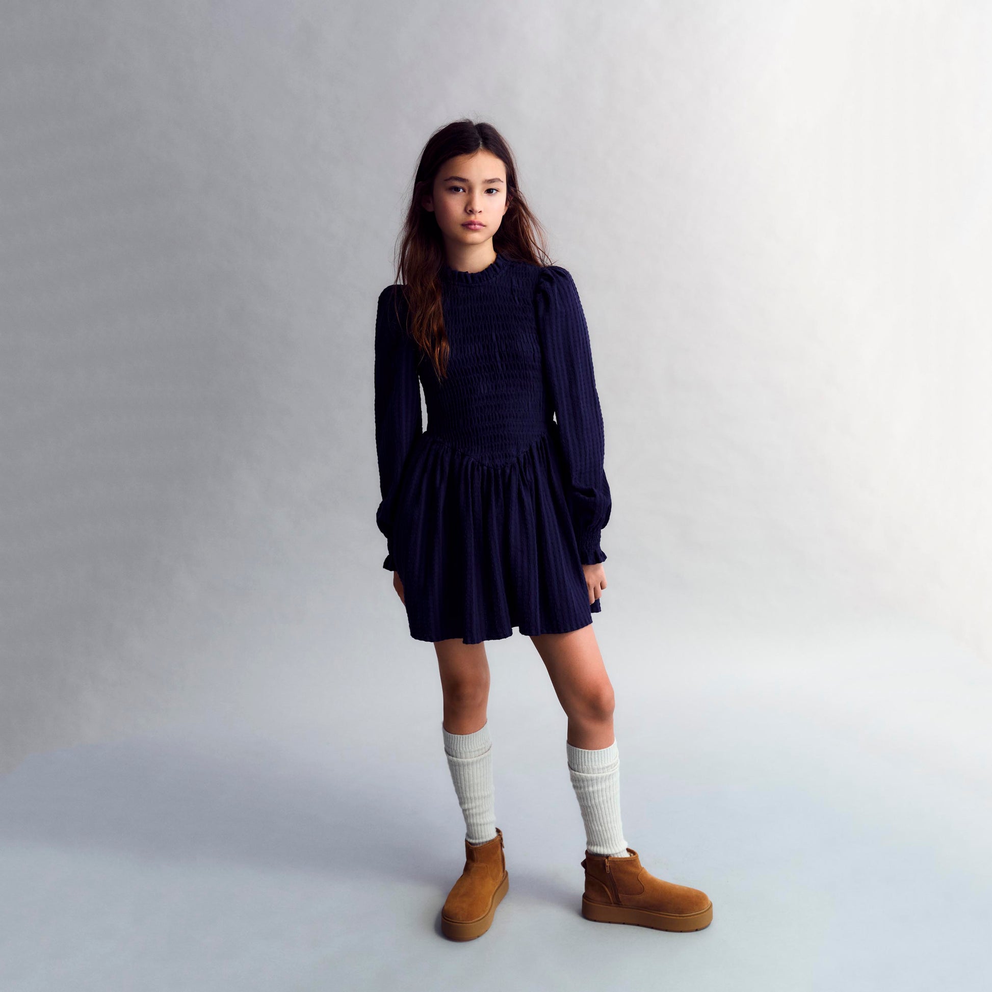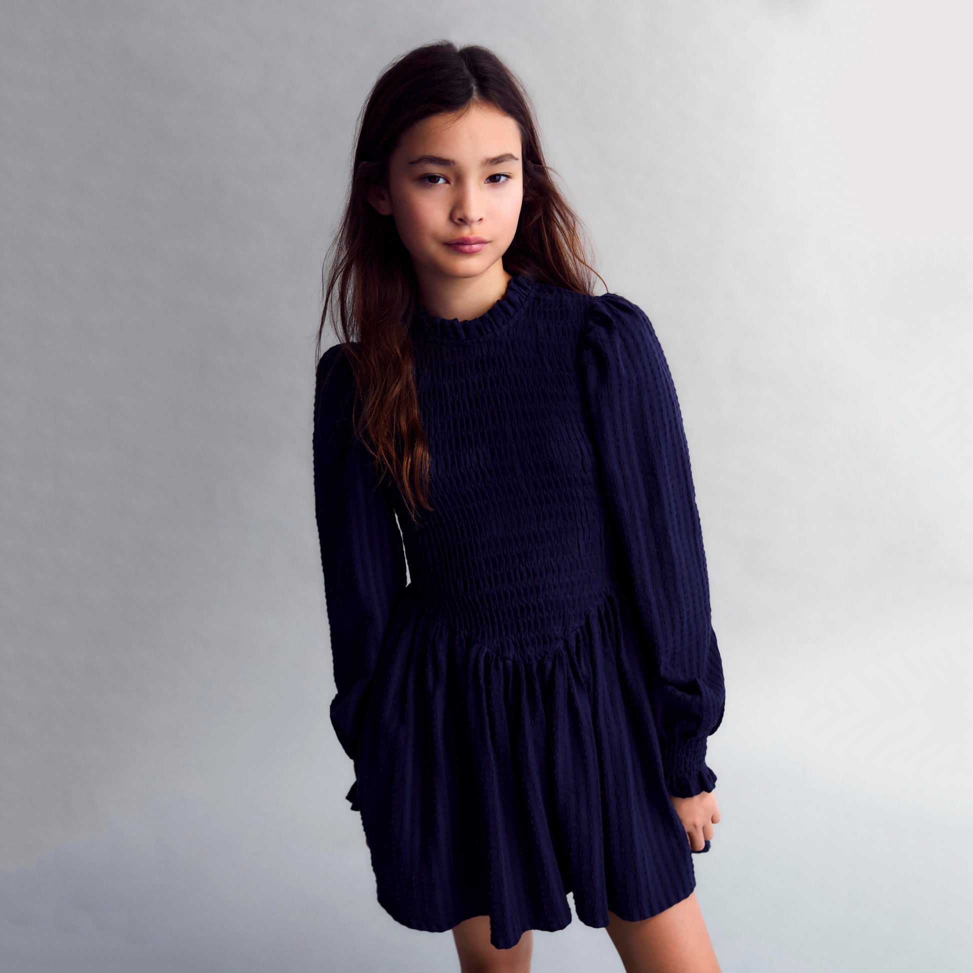 女童藏青色棉连衣裙