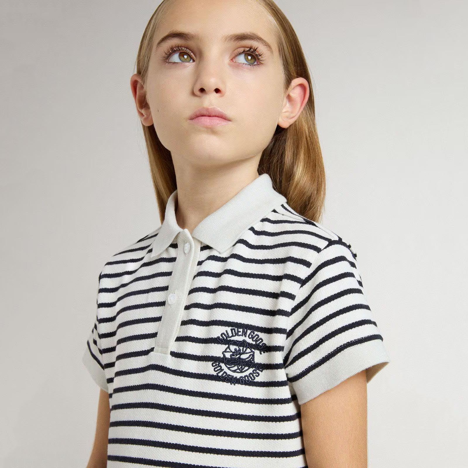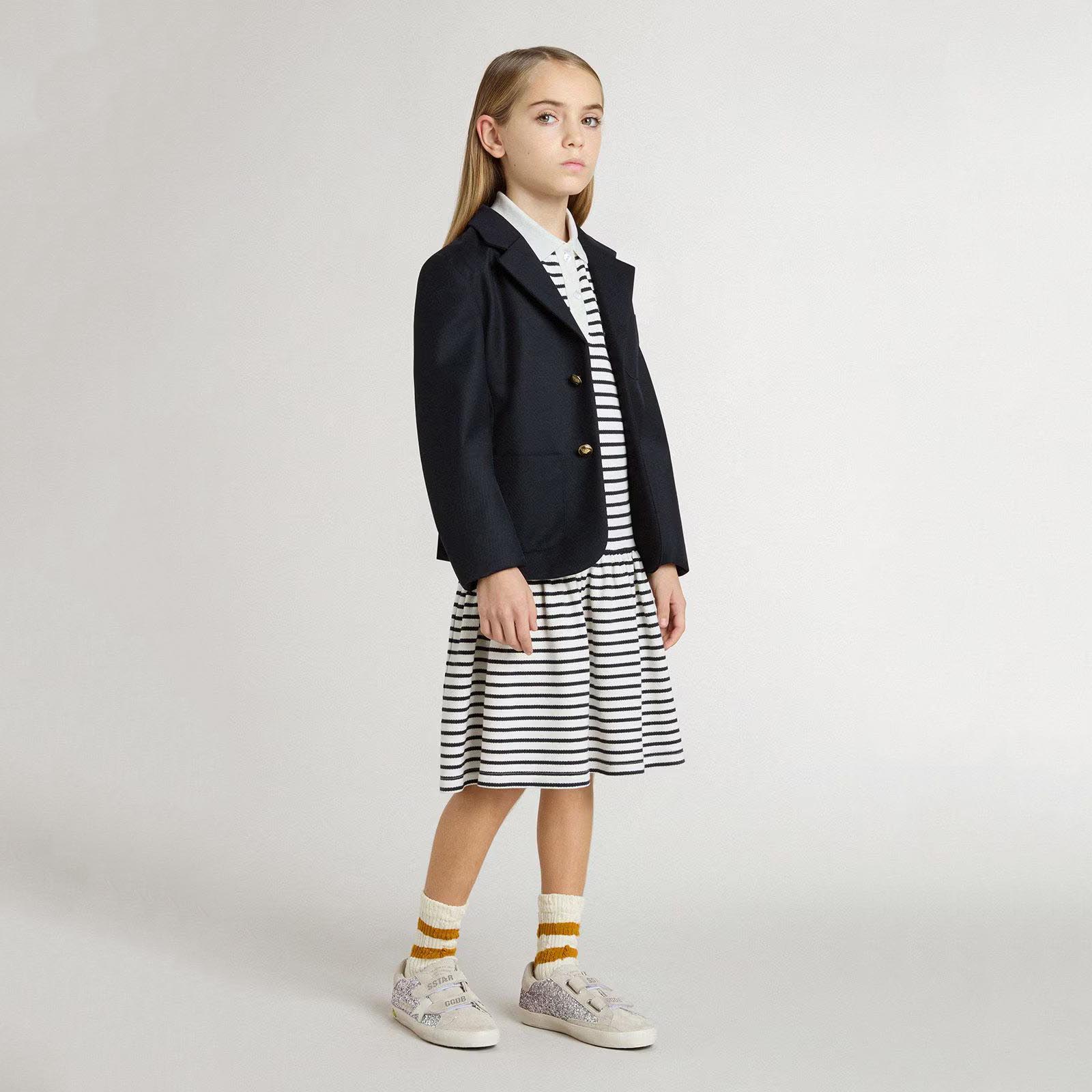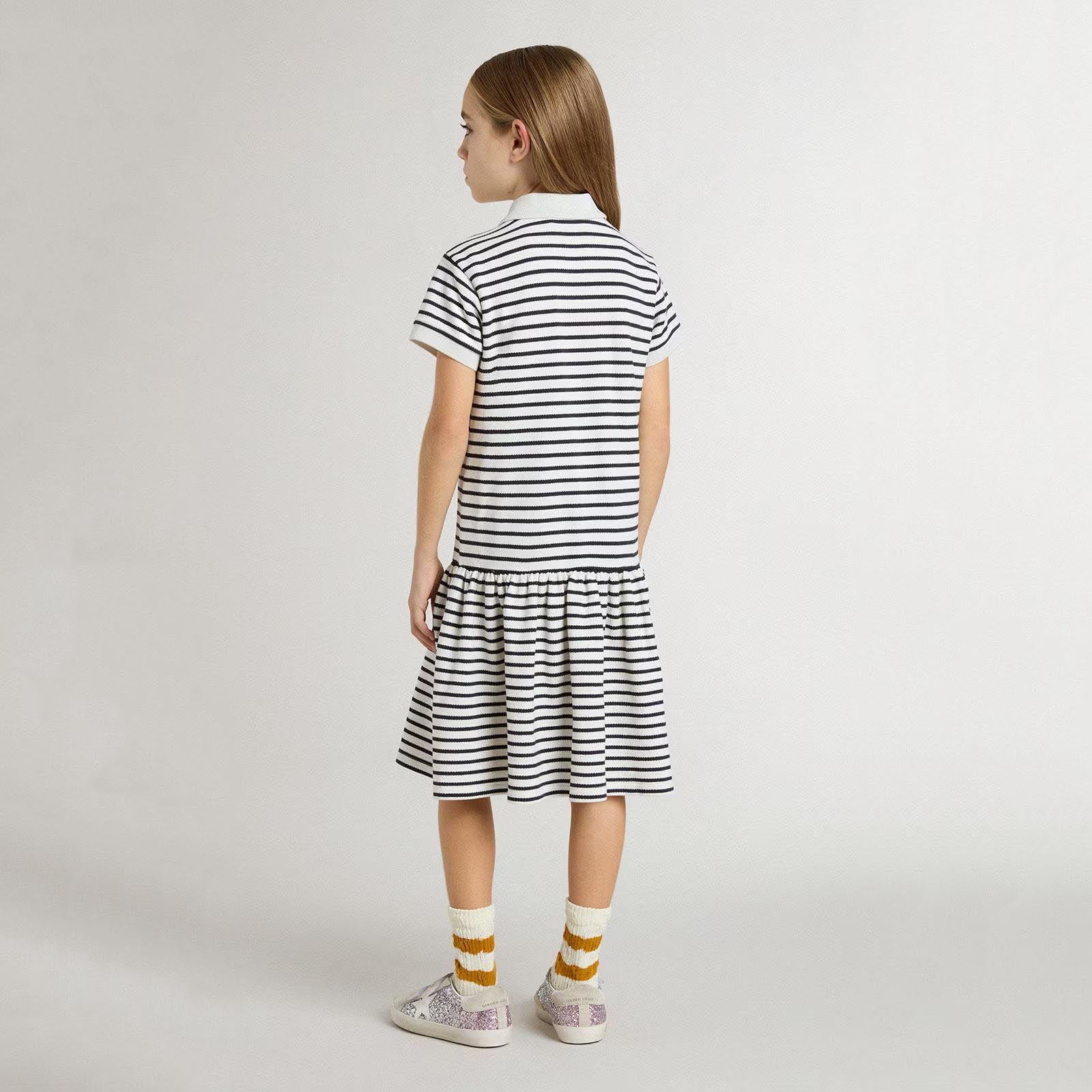 女童藏青色条纹棉连衣裙