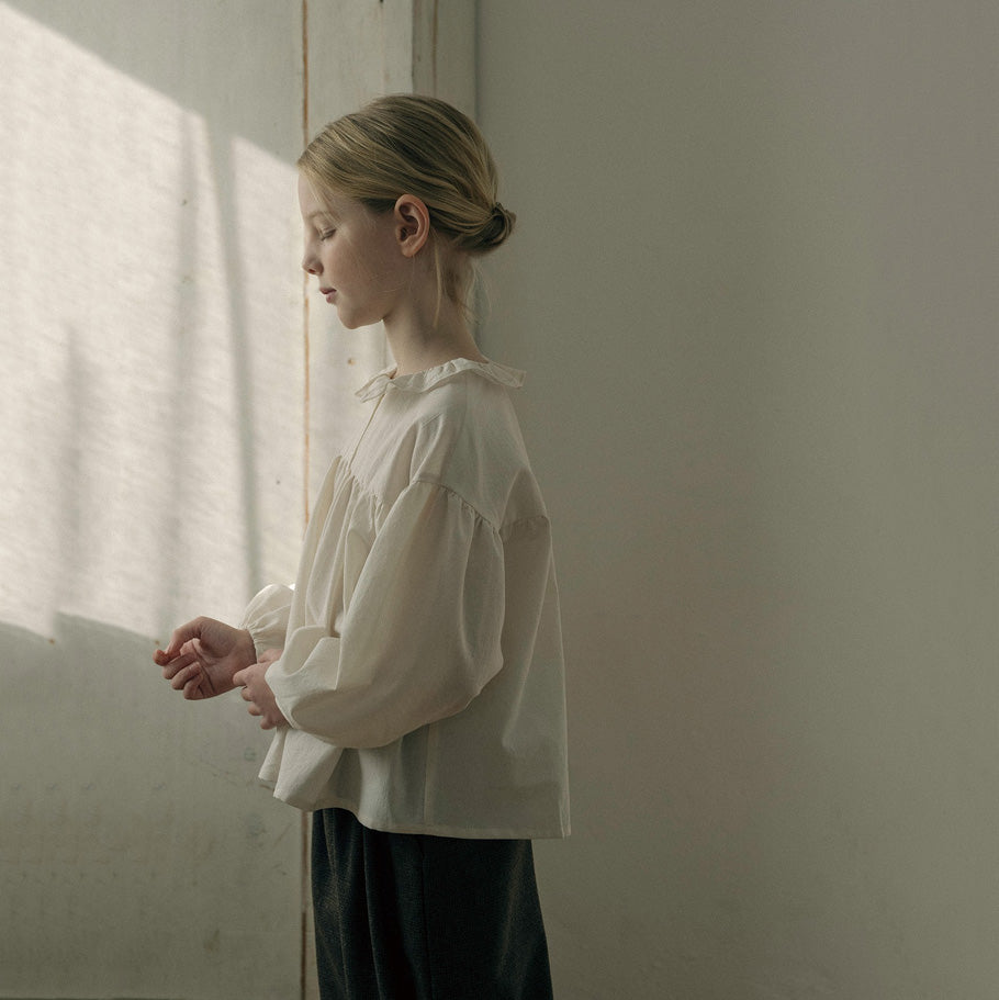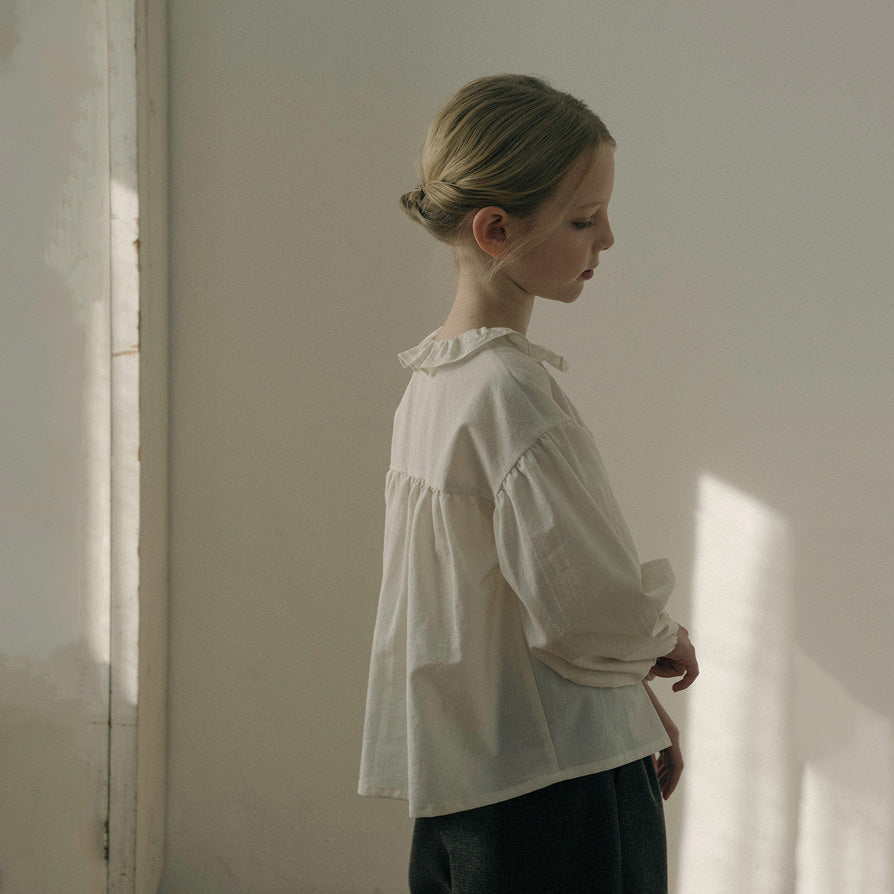 女童奶油白荷叶边棉衬衫