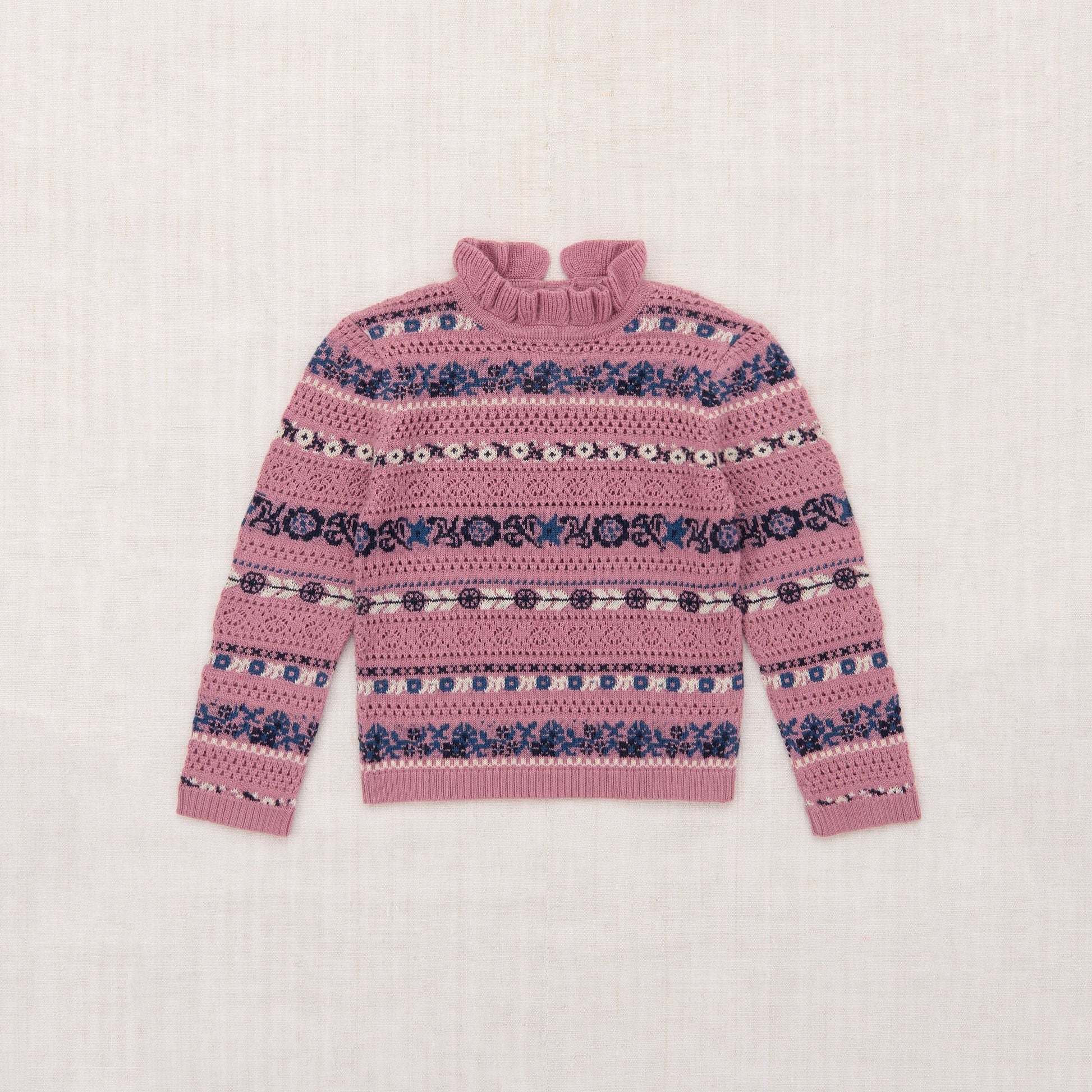 女童粉色提花羊毛毛衣