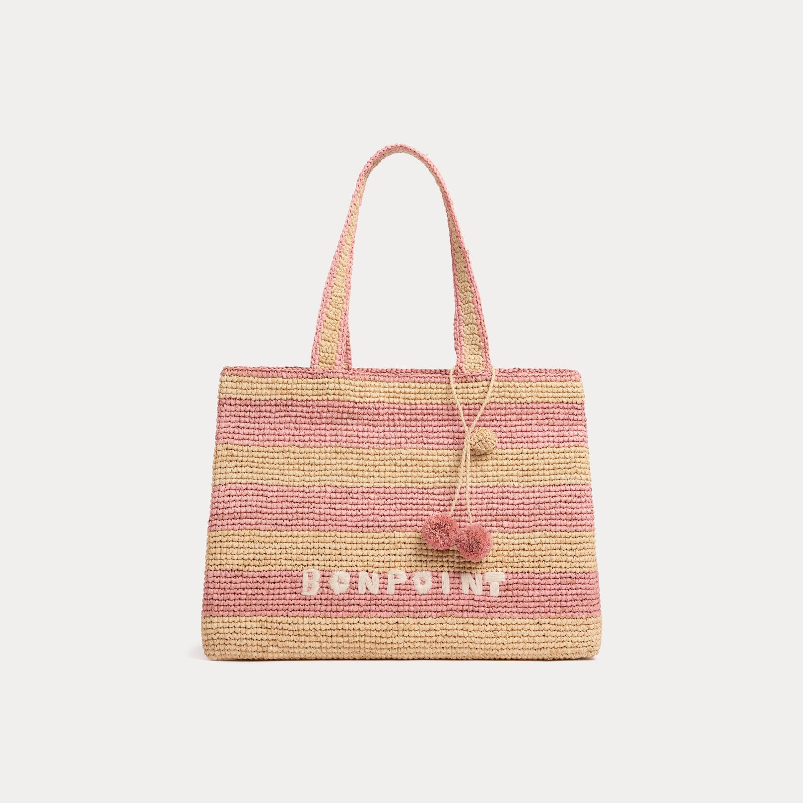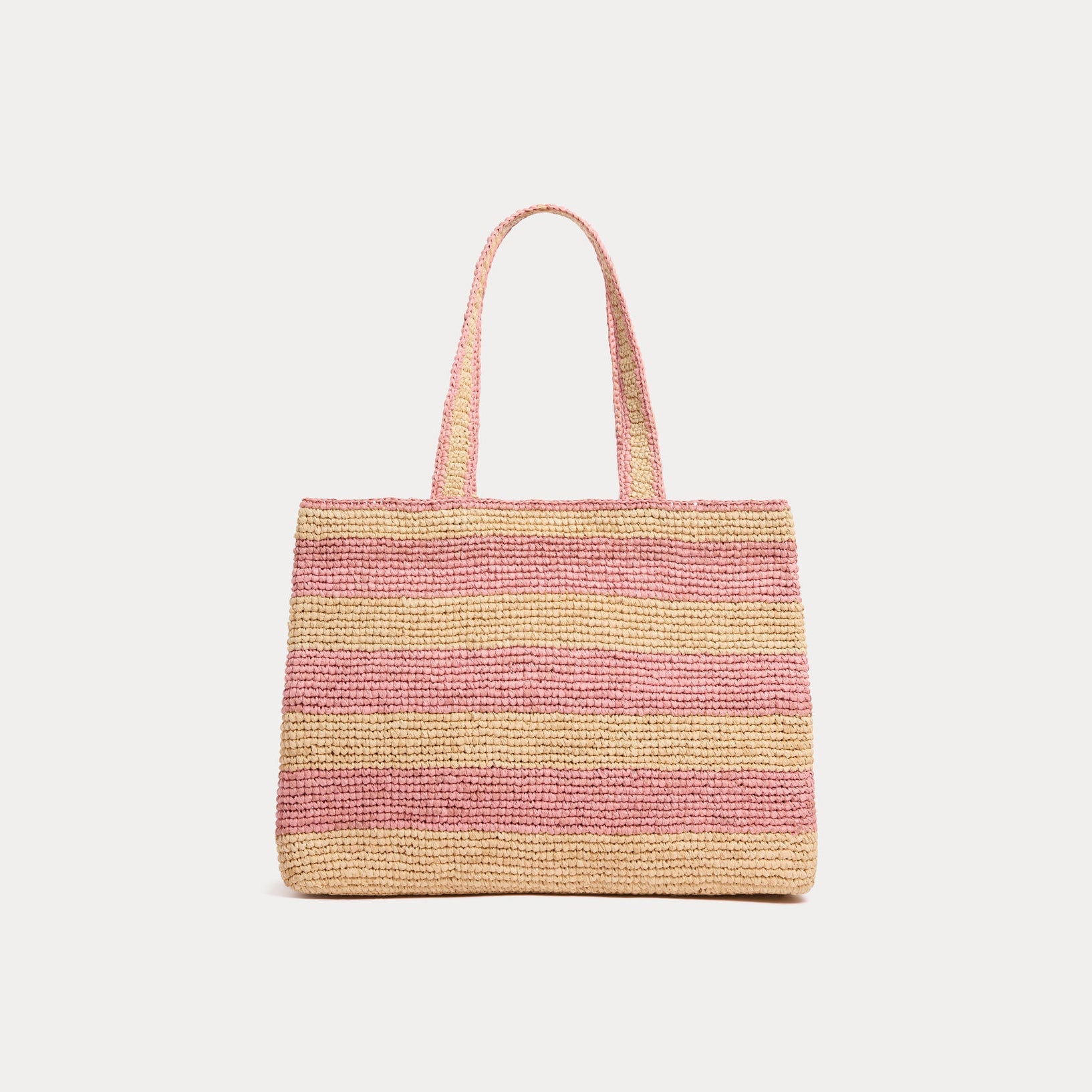 女童粉色条纹刺绣Logo拉菲草手提包( 33 x 12 x 24 cm)