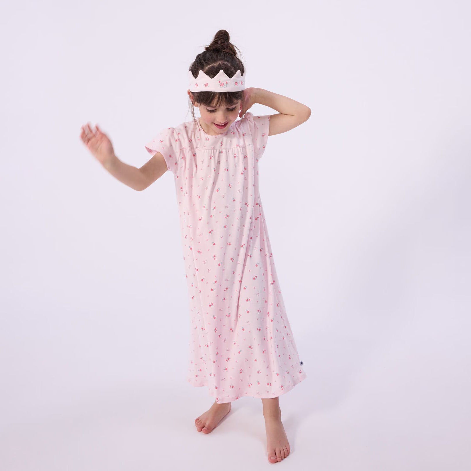 女童粉色碎花棉睡裙