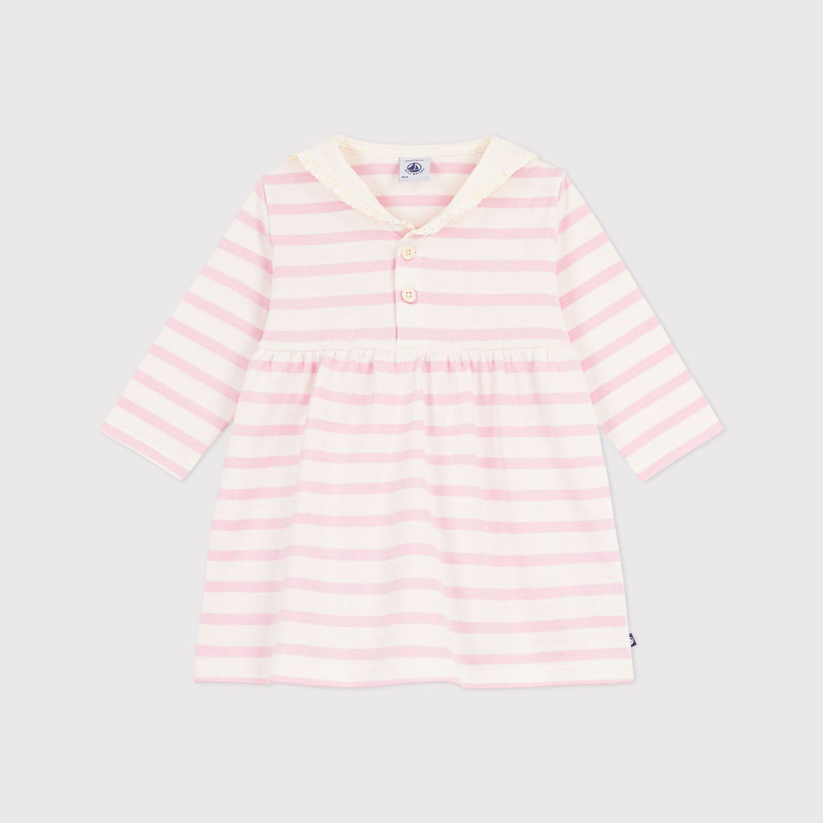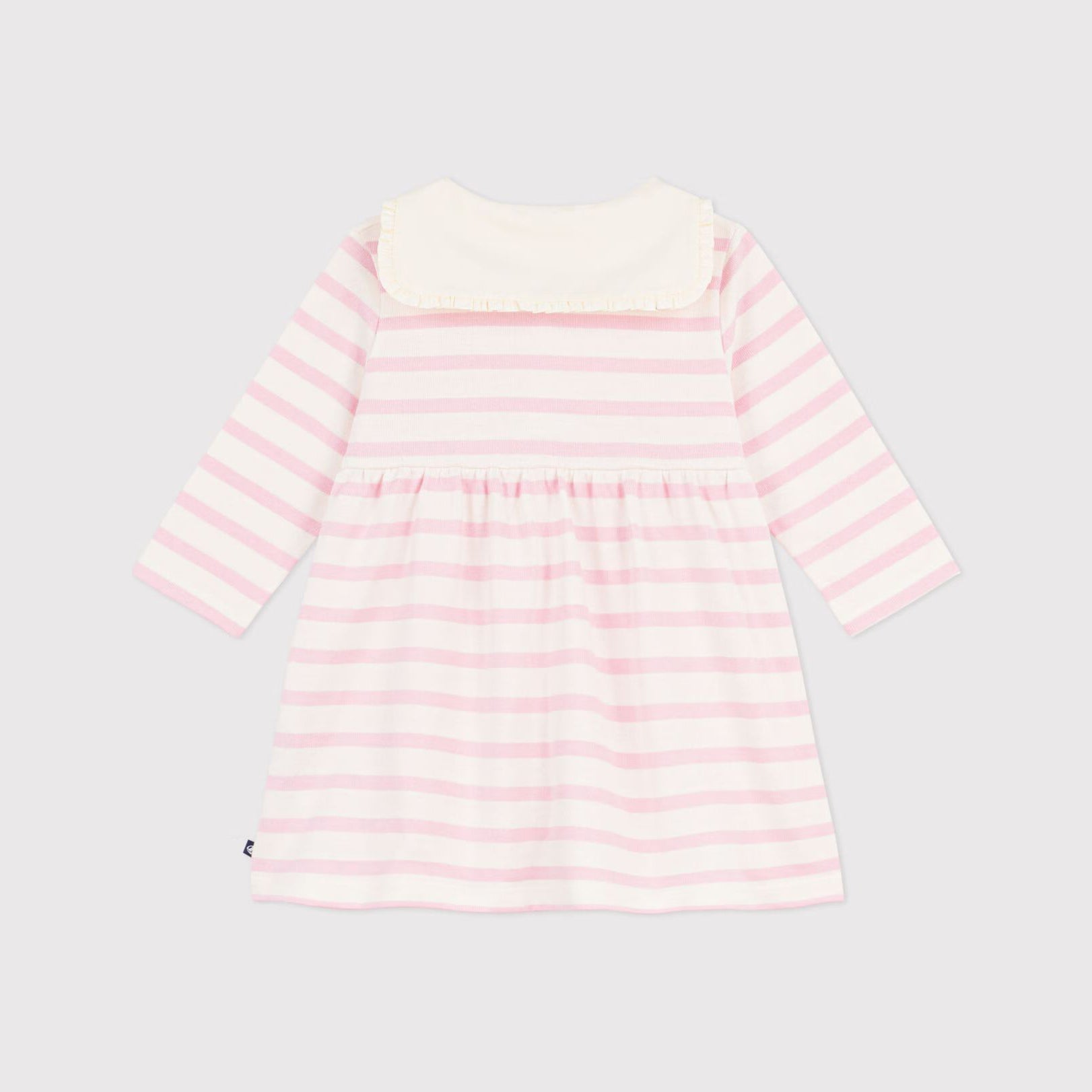 女婴浅粉色条纹棉连衣裙