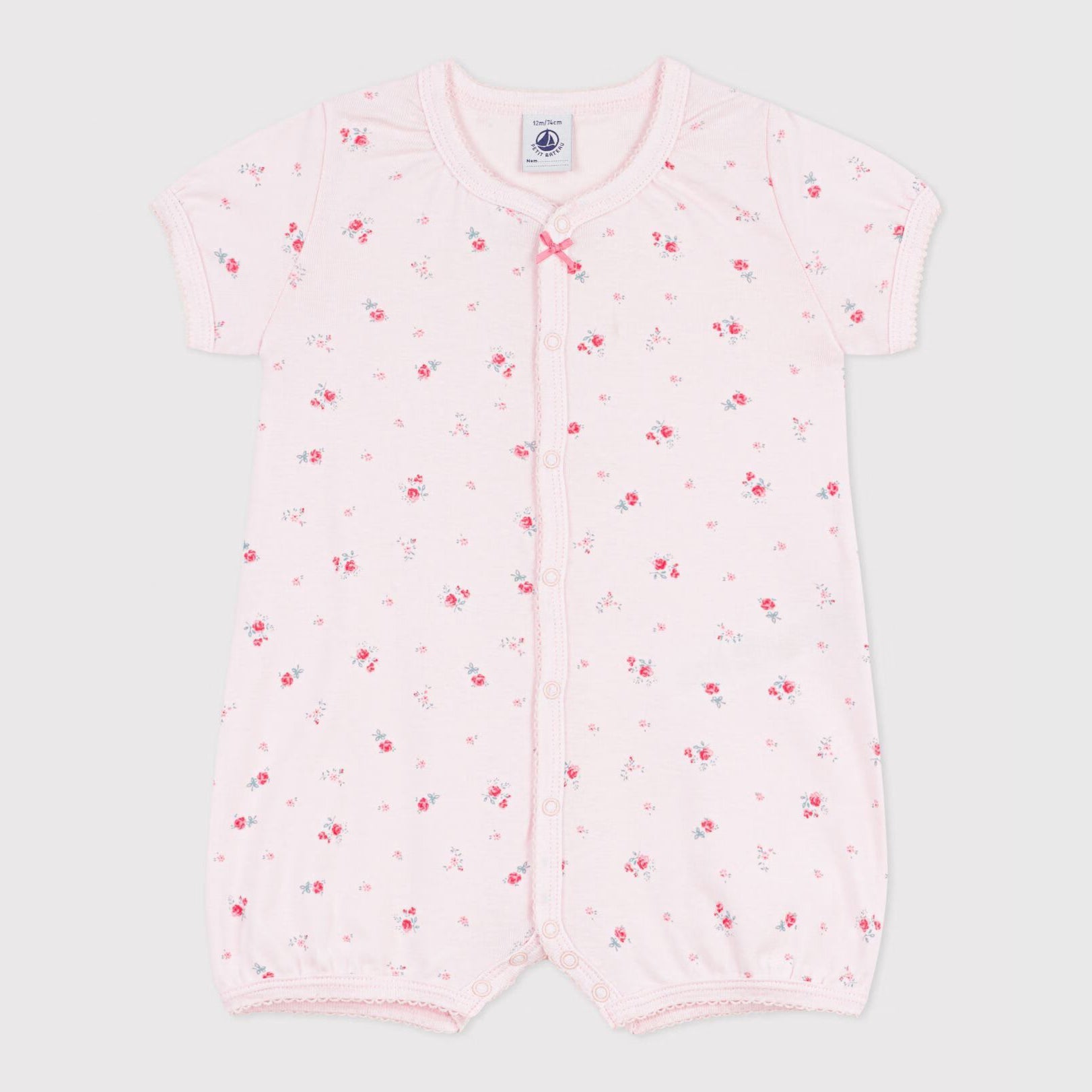 女婴浅粉色碎花棉连体衣