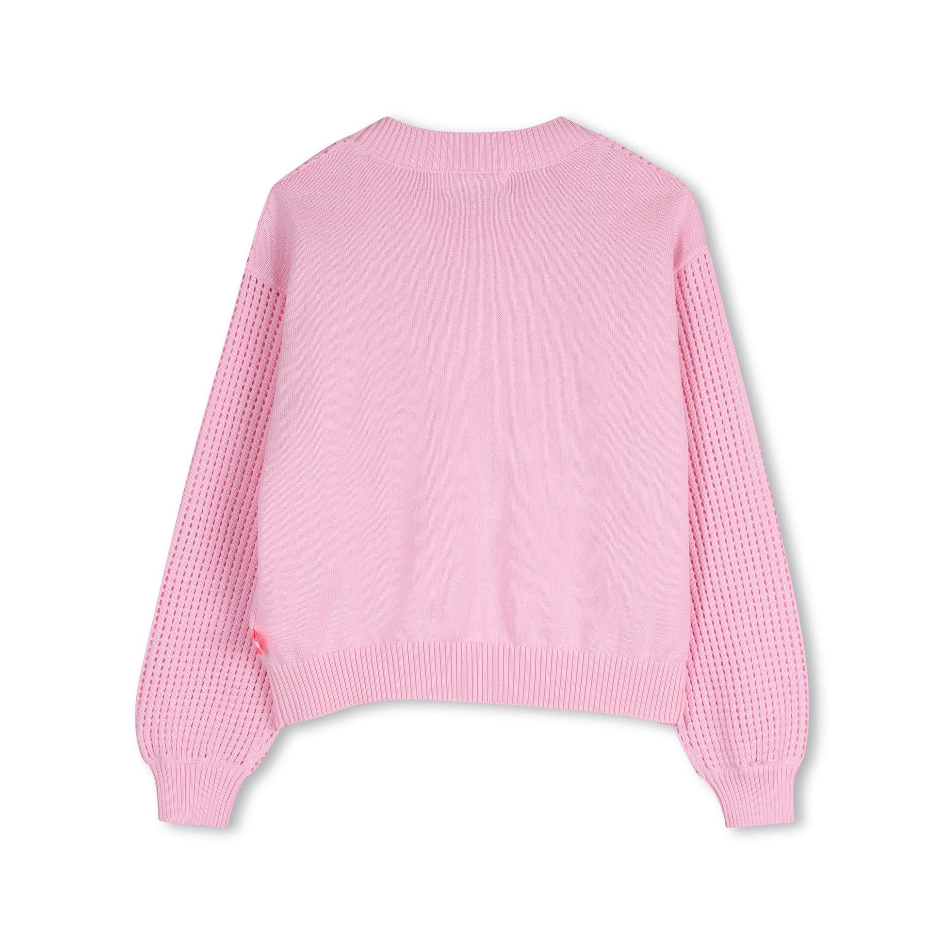 女童粉色镂空棉针织毛衣