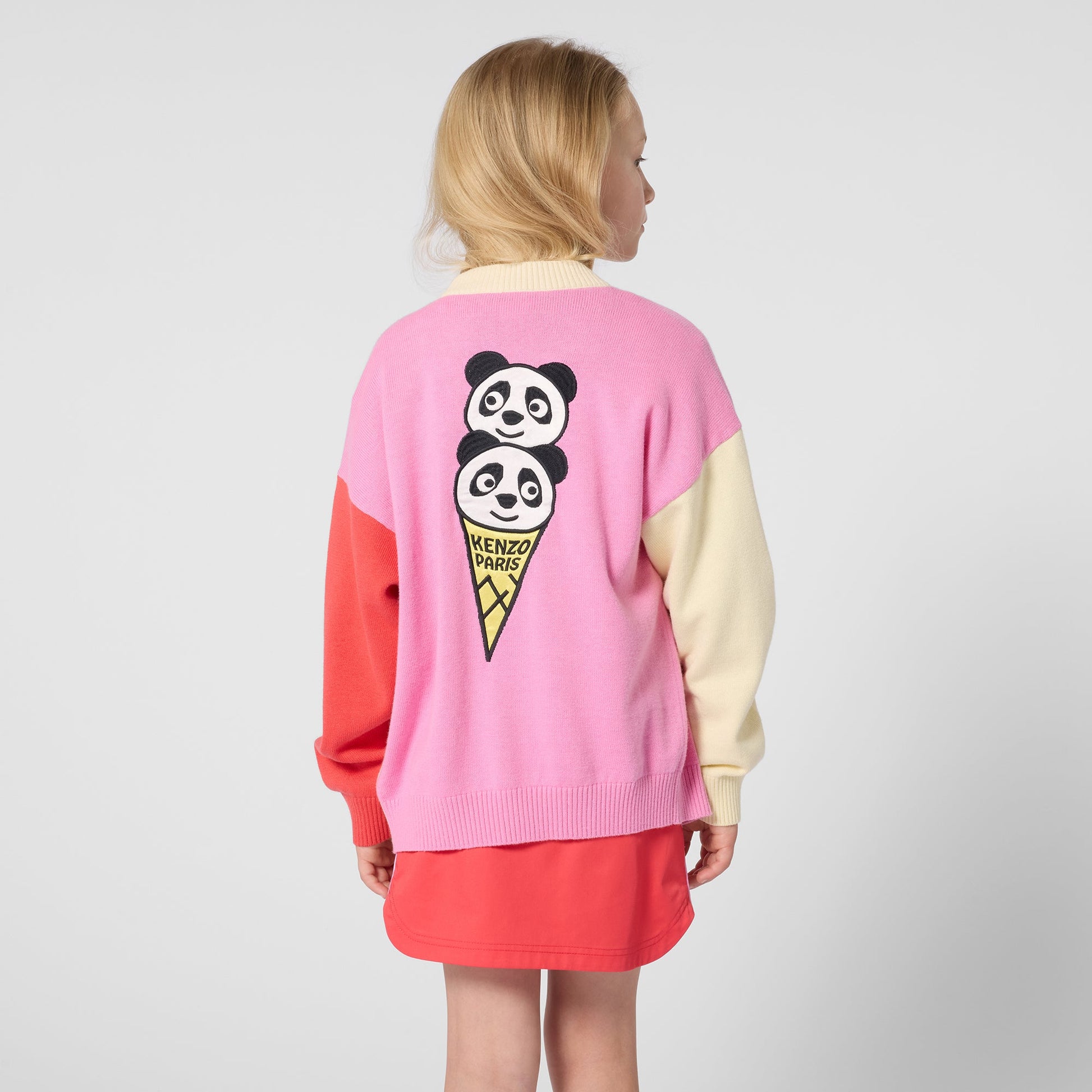 女童彩色熊猫冰淇淋刺绣棉针织开衫