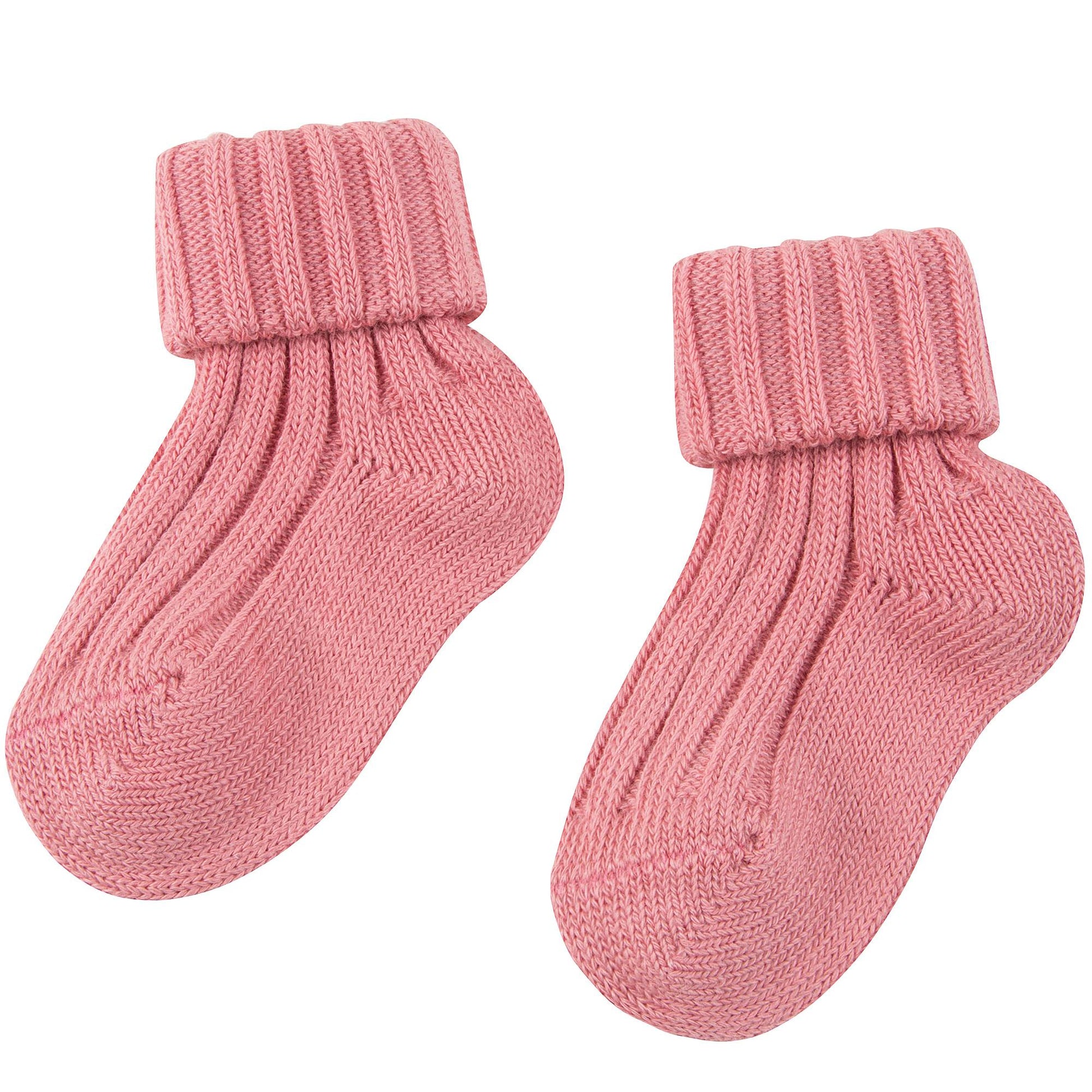 婴儿线织短筒袜,樱花粉色婴儿袜子厚实有棱纹,非常温暖,易于护理。