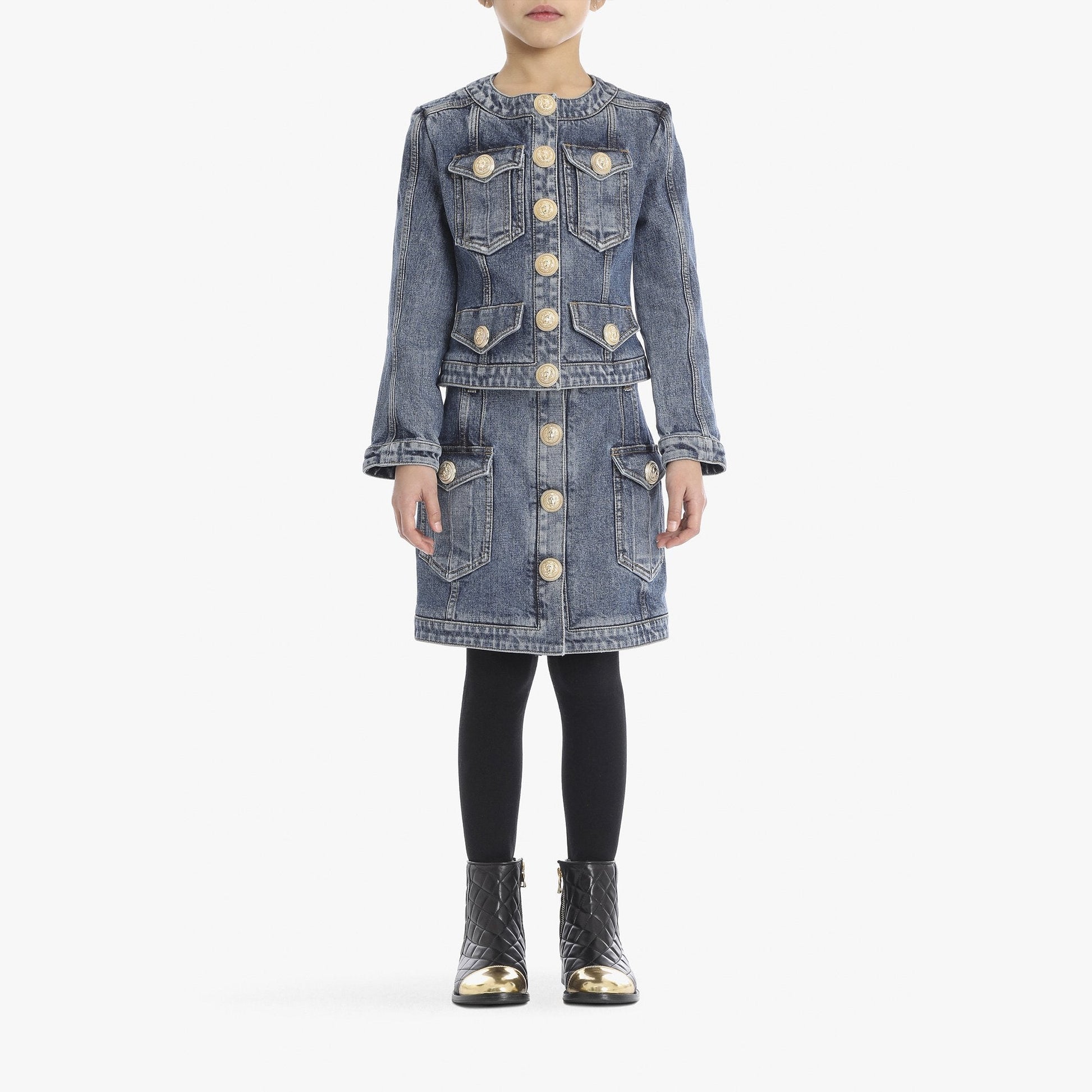 增加 女童牛仔蓝色棉短裙 的数量