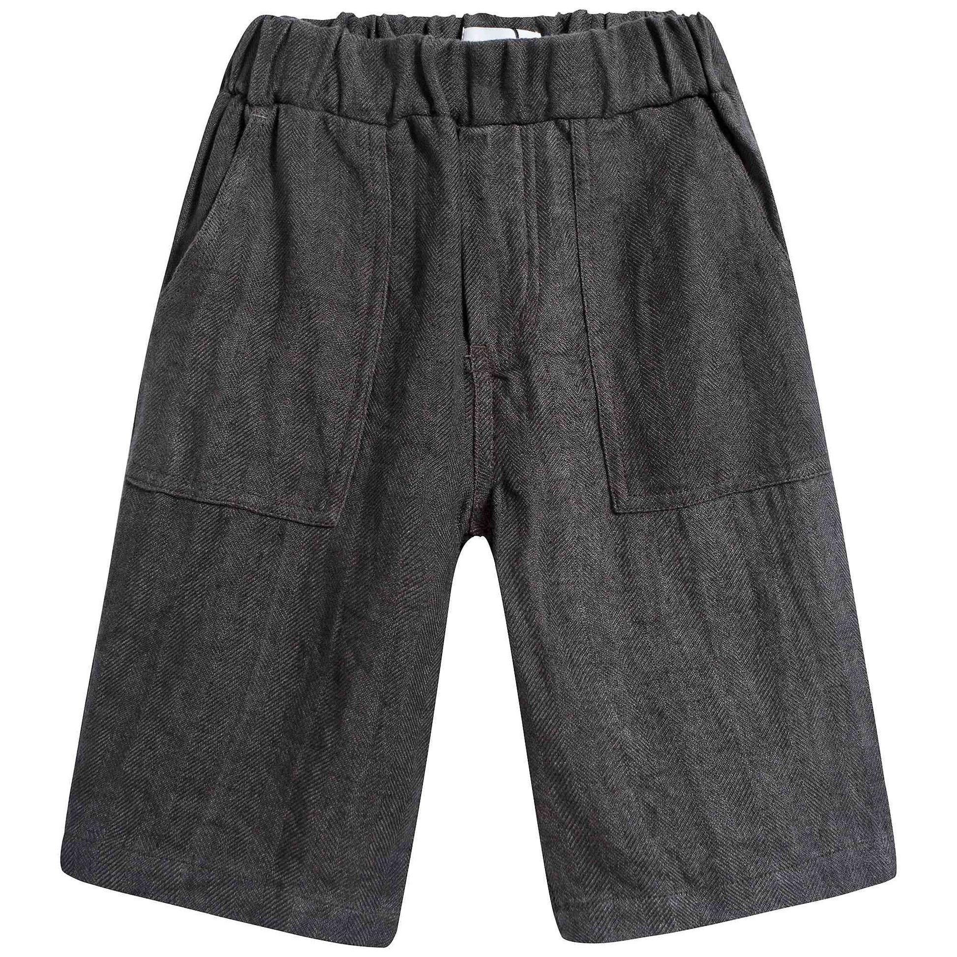 男童木炭色亚麻短裤