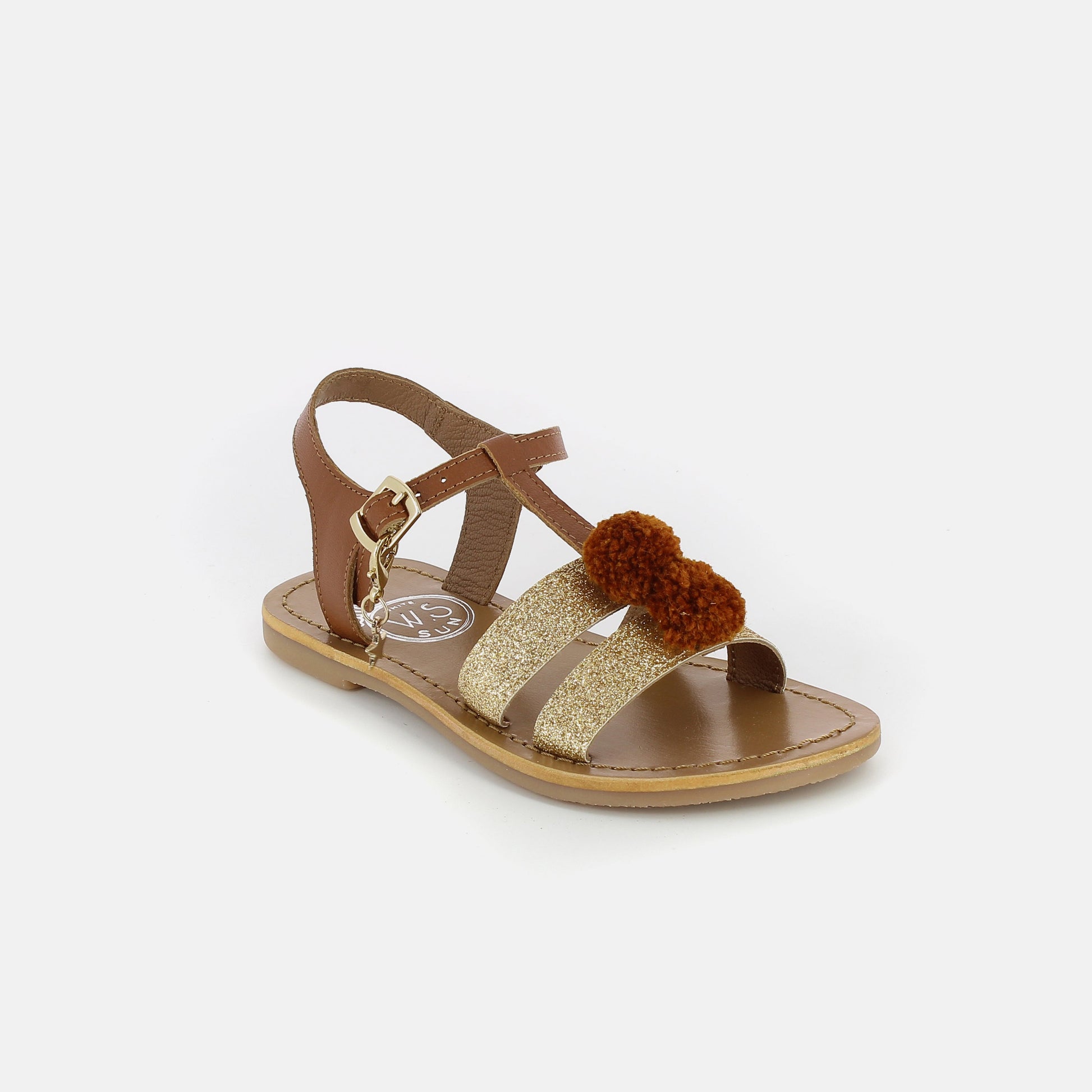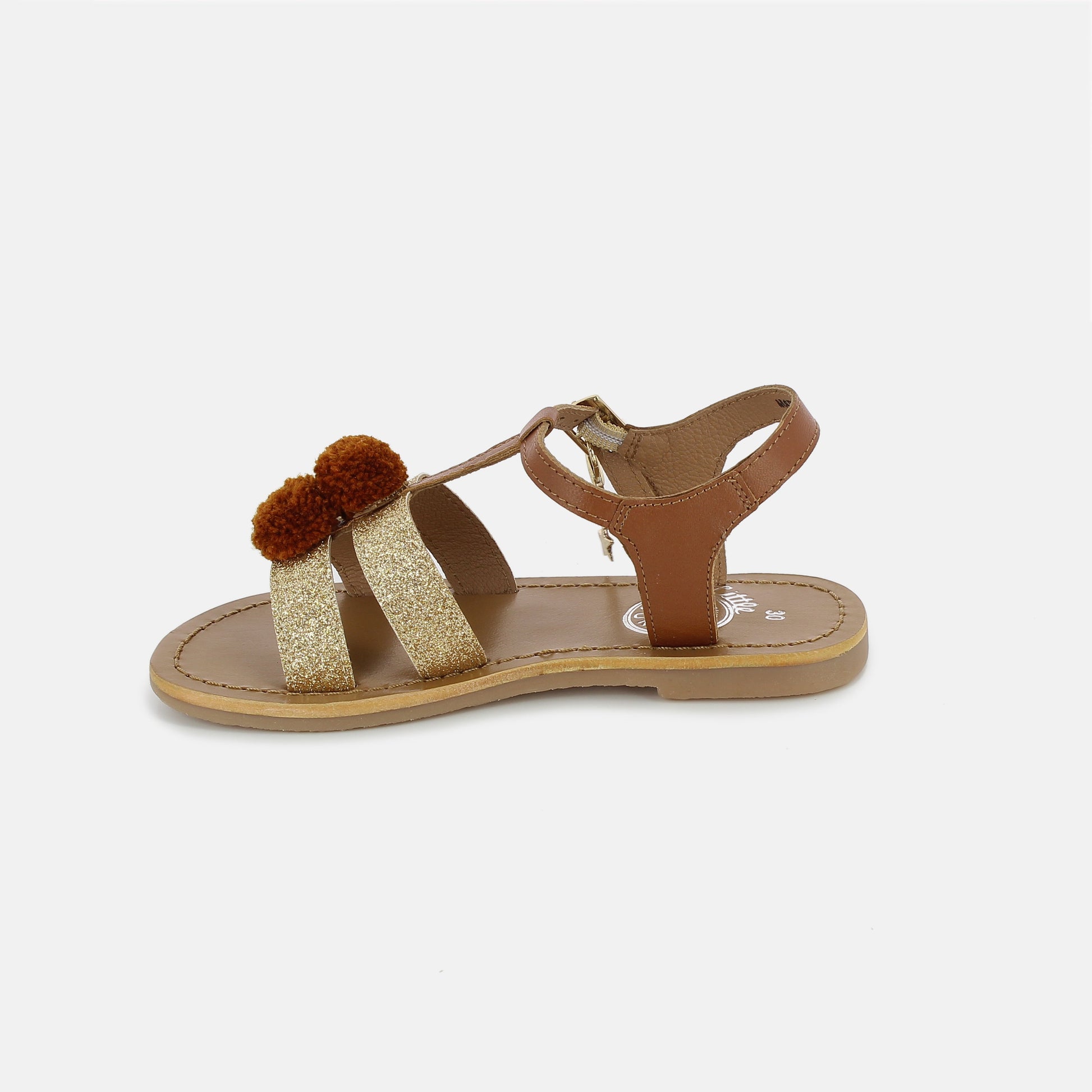 女童驼色&金色皮革凉鞋