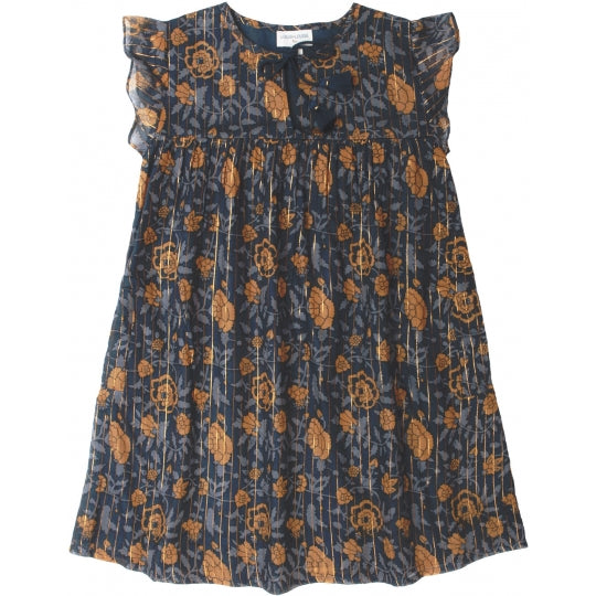 Girls Blue Flowers Printed Cotton Dress