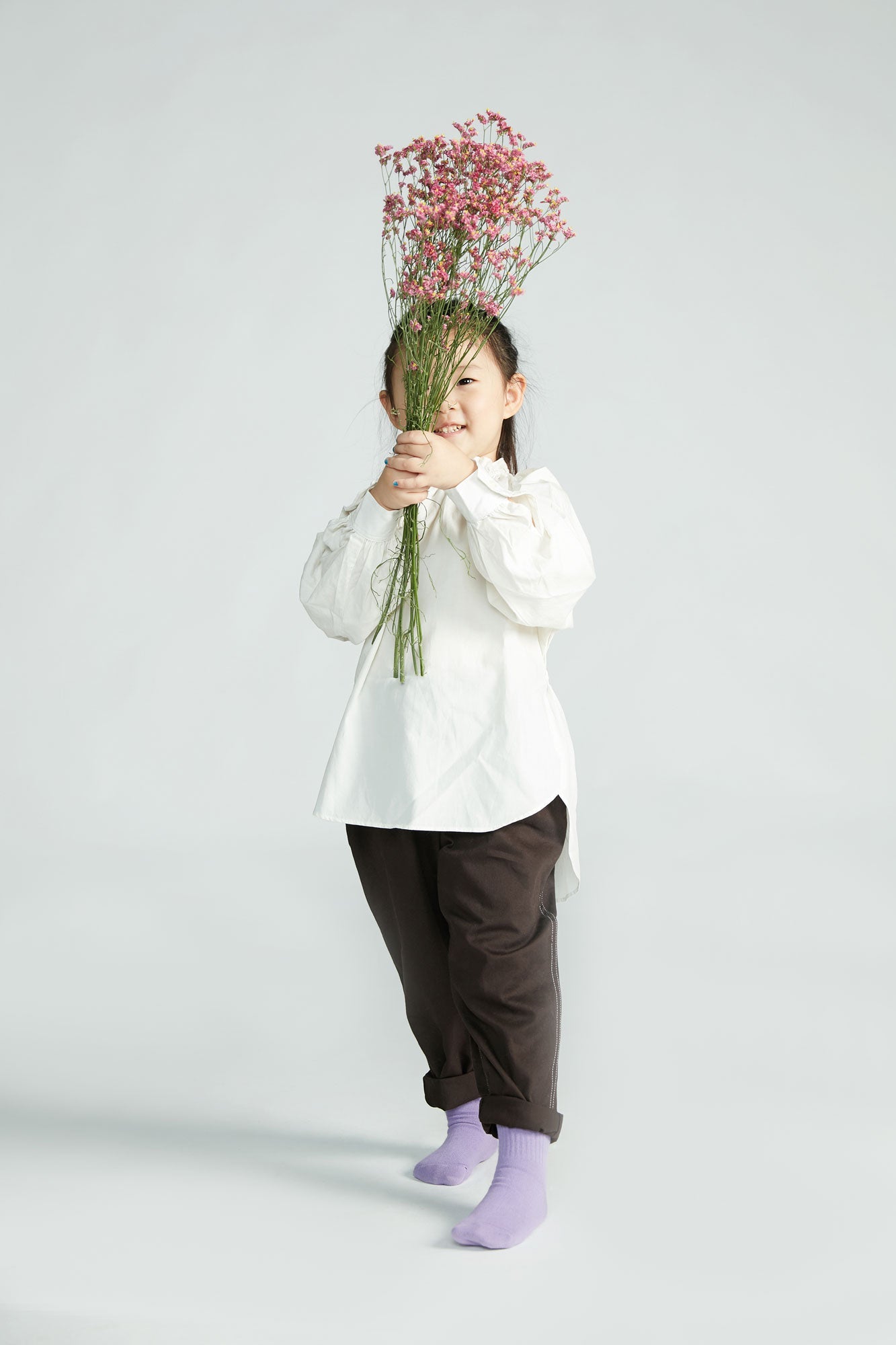 女童白色双面褶边衬衫