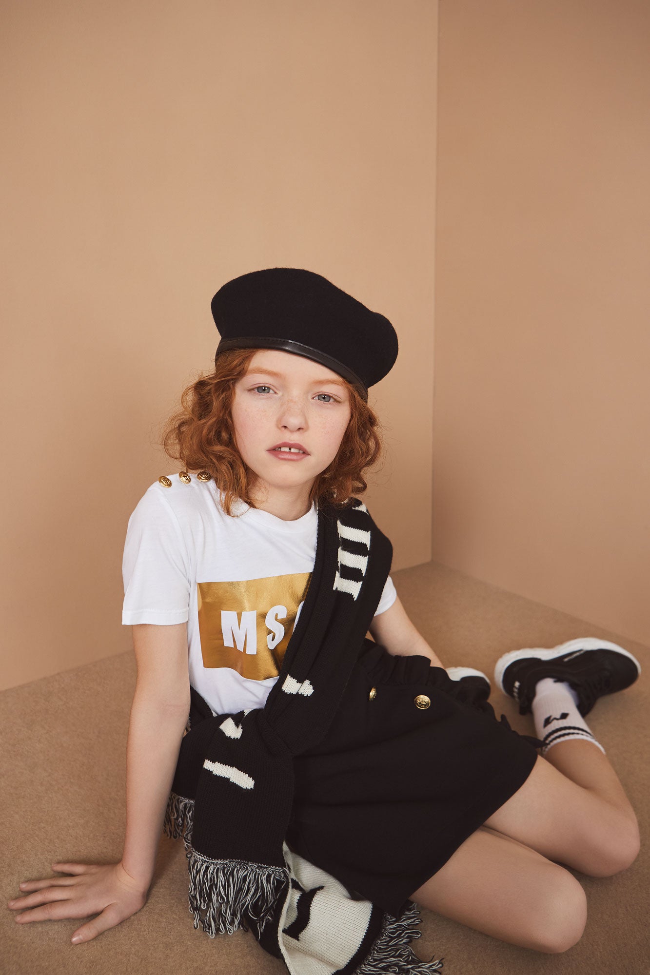 女童黑色纽扣短裙